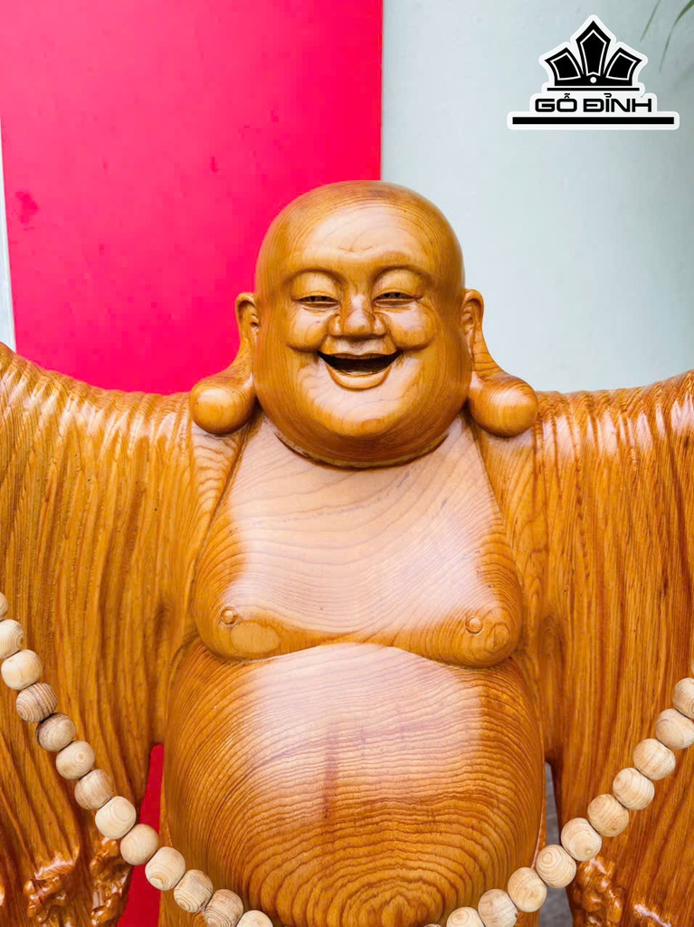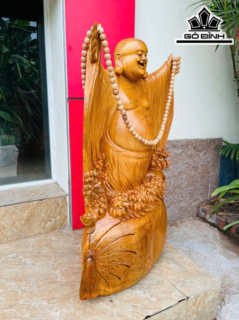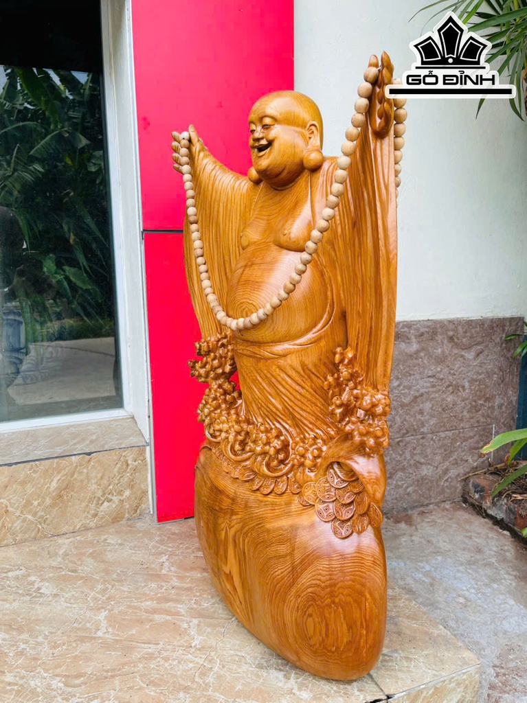 Tượng Phật Di Lặc Nghênh Hỷ Tứ Phương Gỗ Ngọc Am Cao 76 Ngang 45 Sâu 18 (cm) - 23kg