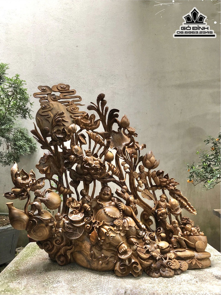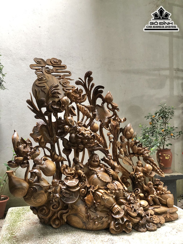 Tượng Phật Di Lặc Ngồi Bao Tiền Gỗ Bách Xanh Cao 100 Ngang 105 Sâu 43 (cm)