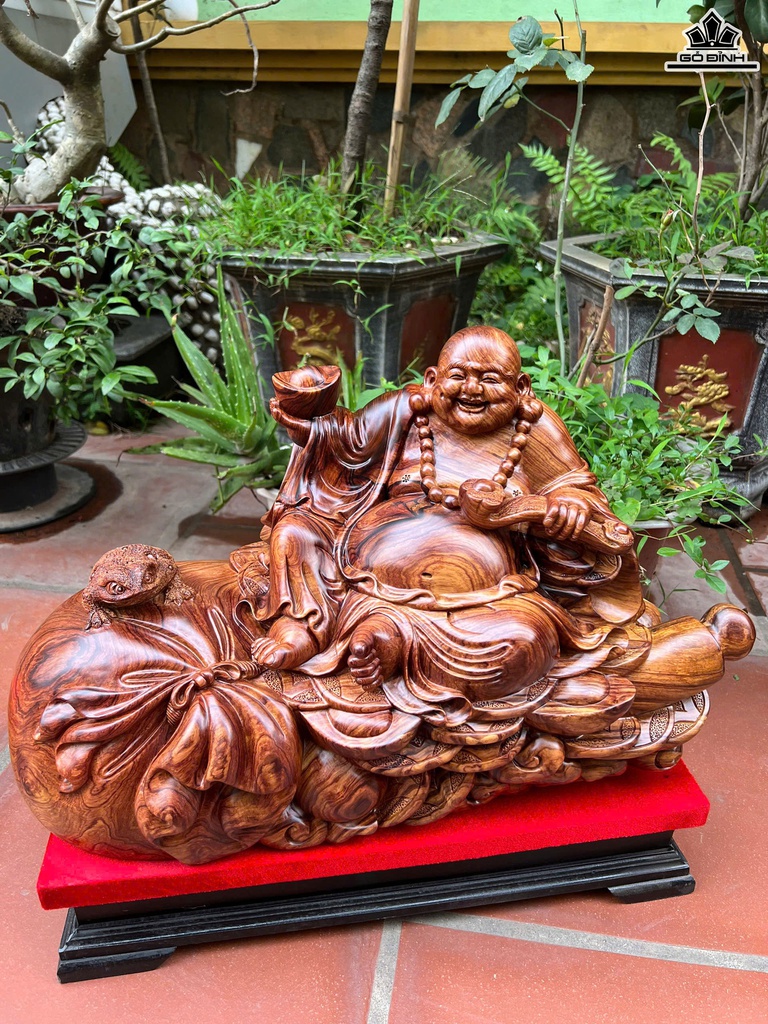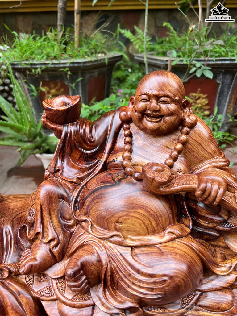 Tượng Phật Di Lặc Ngồi Bao Tiền Gỗ Cẩm Cao Cả Kỷ 43 - Riêng Tượng Cao 33 Ngang 56 Sâu 25 (cm)