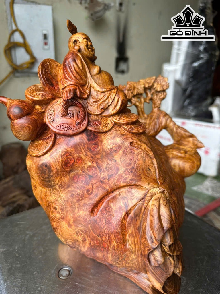 Tượng Phật Di Lặc Ngồi Bao Tiền Gỗ Nu Hương Cao 29 Ngang 25 Sâu 22 (cm)