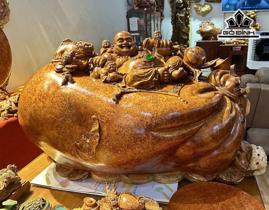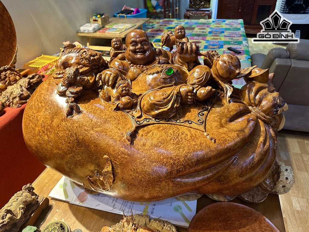 Tượng Phật Di Lặc Ngồi Bao Tiền Gỗ Nu Hương Cao 52 Ngang 110 Sâu 45 (cm)