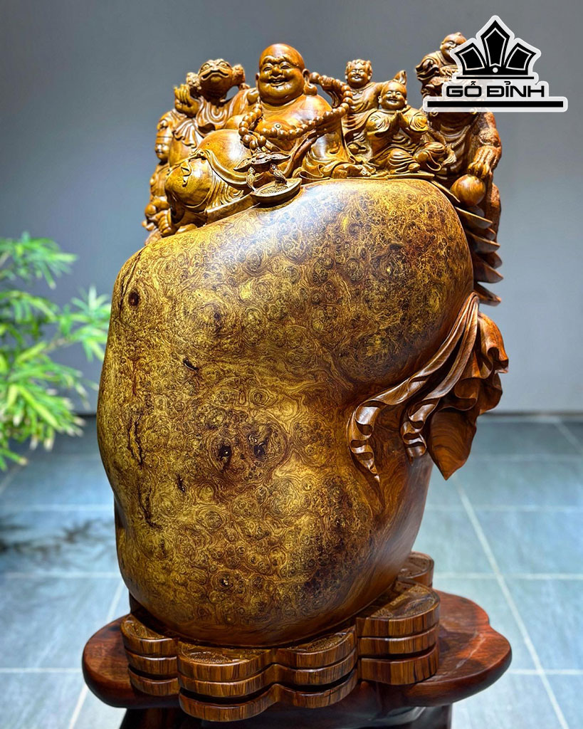 Tượng Phật Di Lặc Ngồi Bao Tiền Gỗ Nu Hương Cao 67 Ngang 50 Sâu 40 (cm)