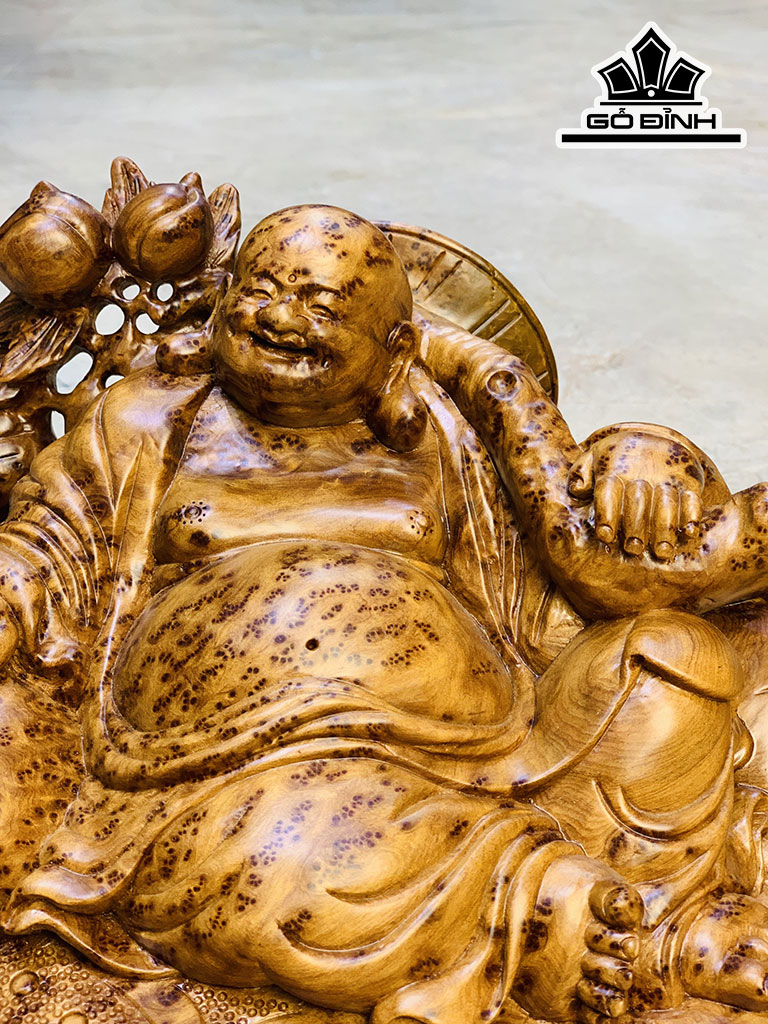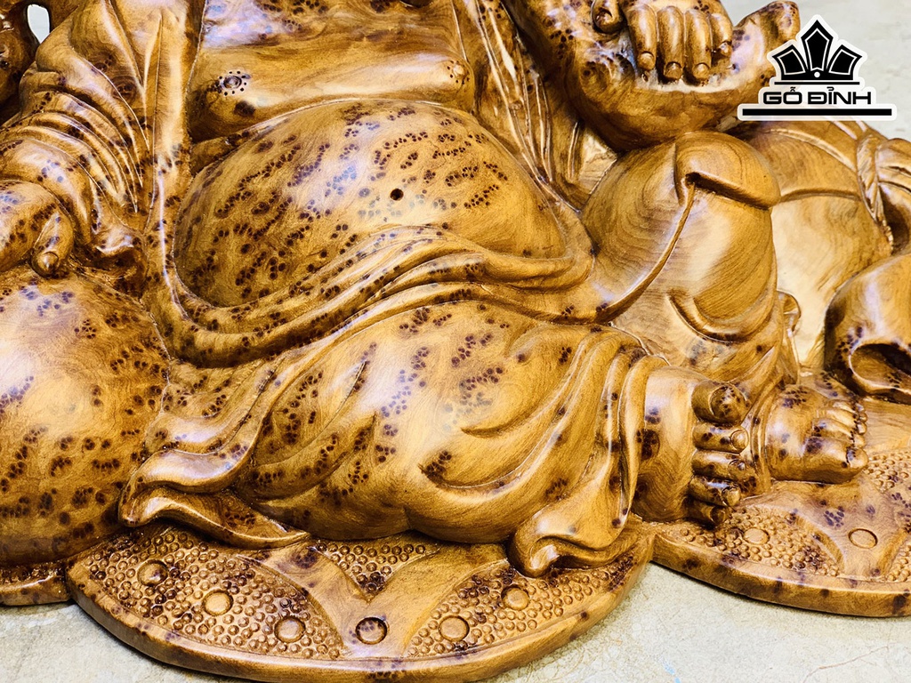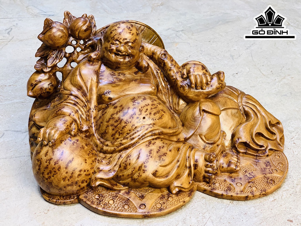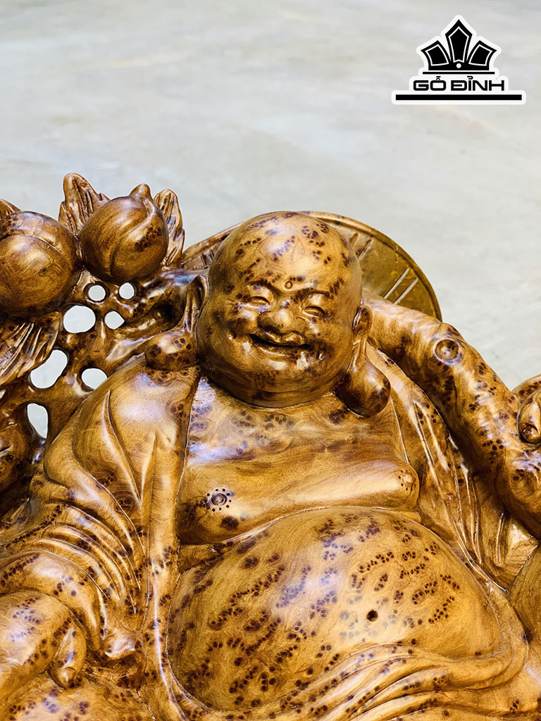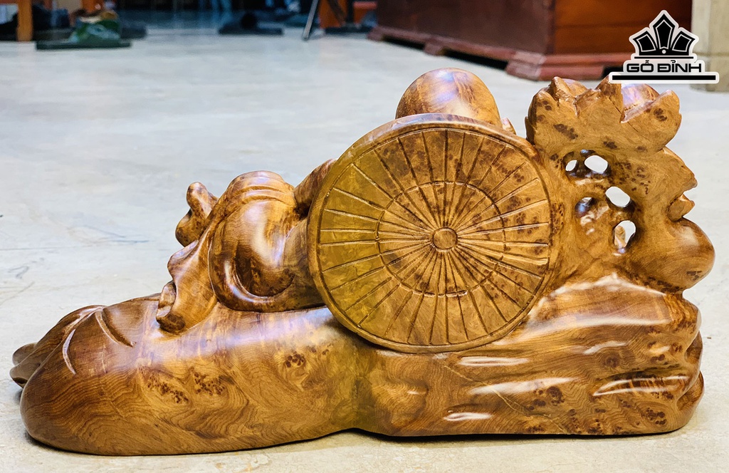 Tượng Phật Di Lặc Ngồi Bao Tiền Gỗ Nu Ngọc Am Cao 13,5 Ngang 28 Sâu 16,5 (cm)