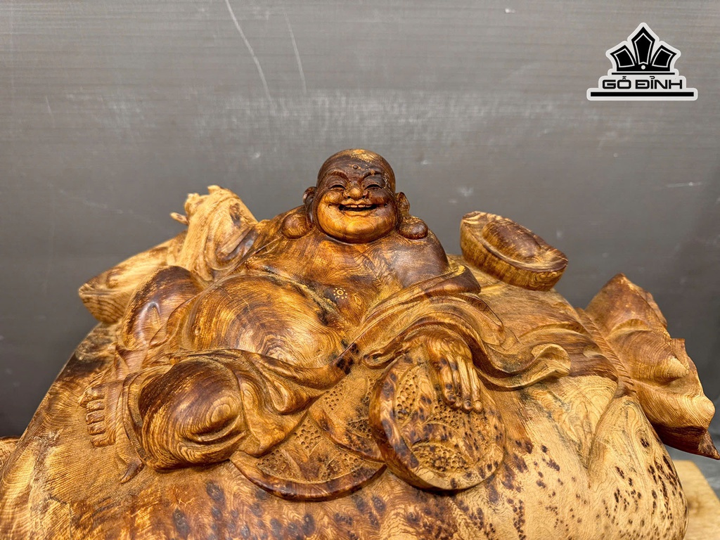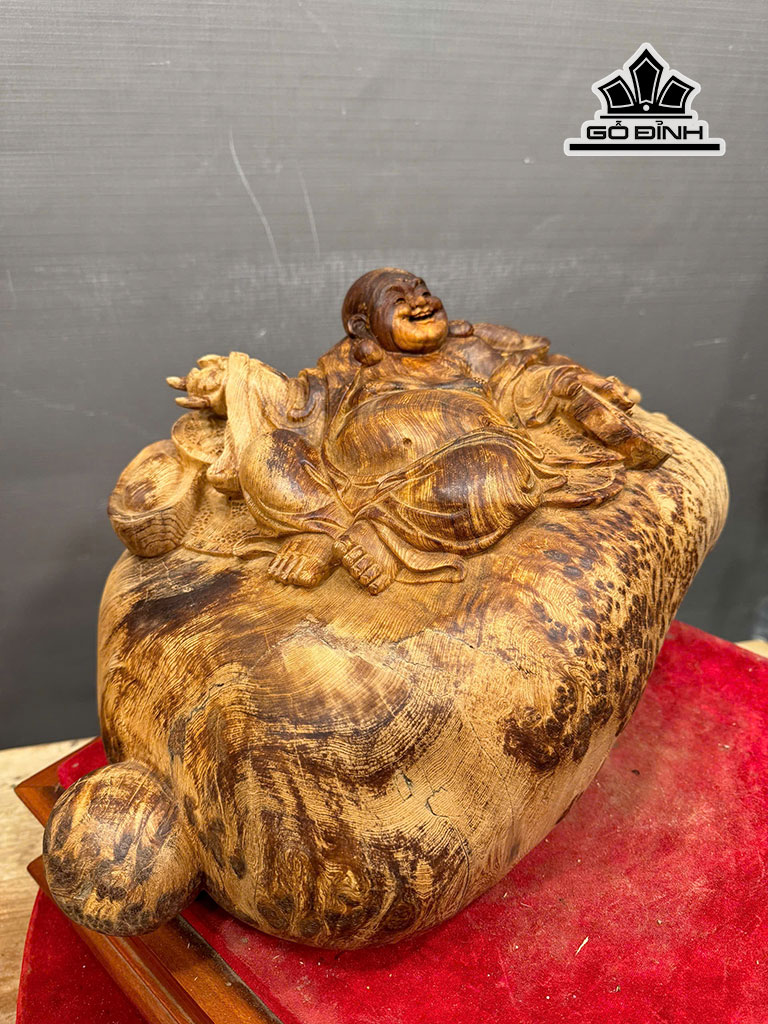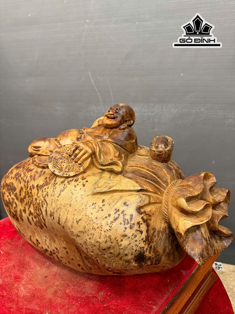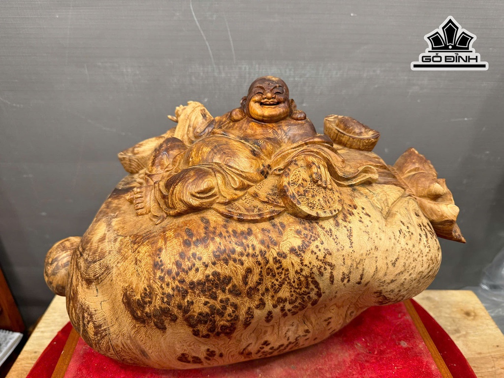 Tượng Phật Di Lặc Ngồi Bao Tiền Gỗ Nu Ngọc Am Cao 25 Ngang 48 Sâu 27 (cm) - 9,5kg