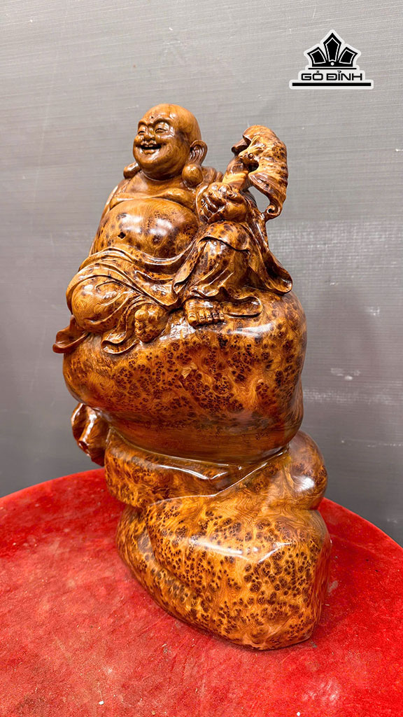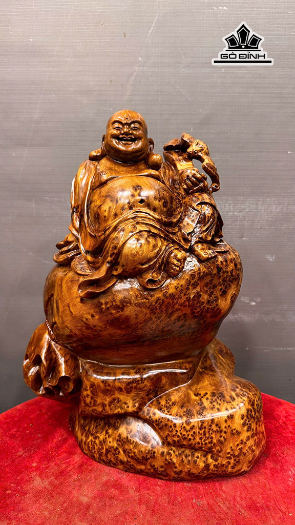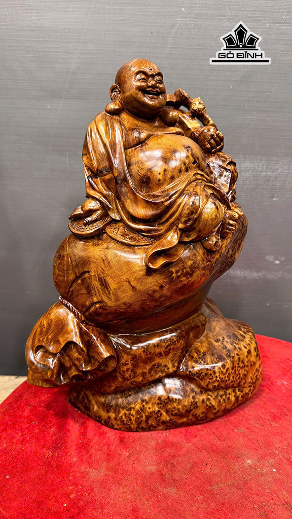 Tượng Phật Di Lặc Ngồi Bao Tiền Gỗ Nu Ngọc Am Cao 43 Ngang 30 Sâu 20 (cm) - 7,5kg
