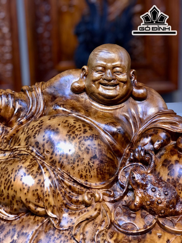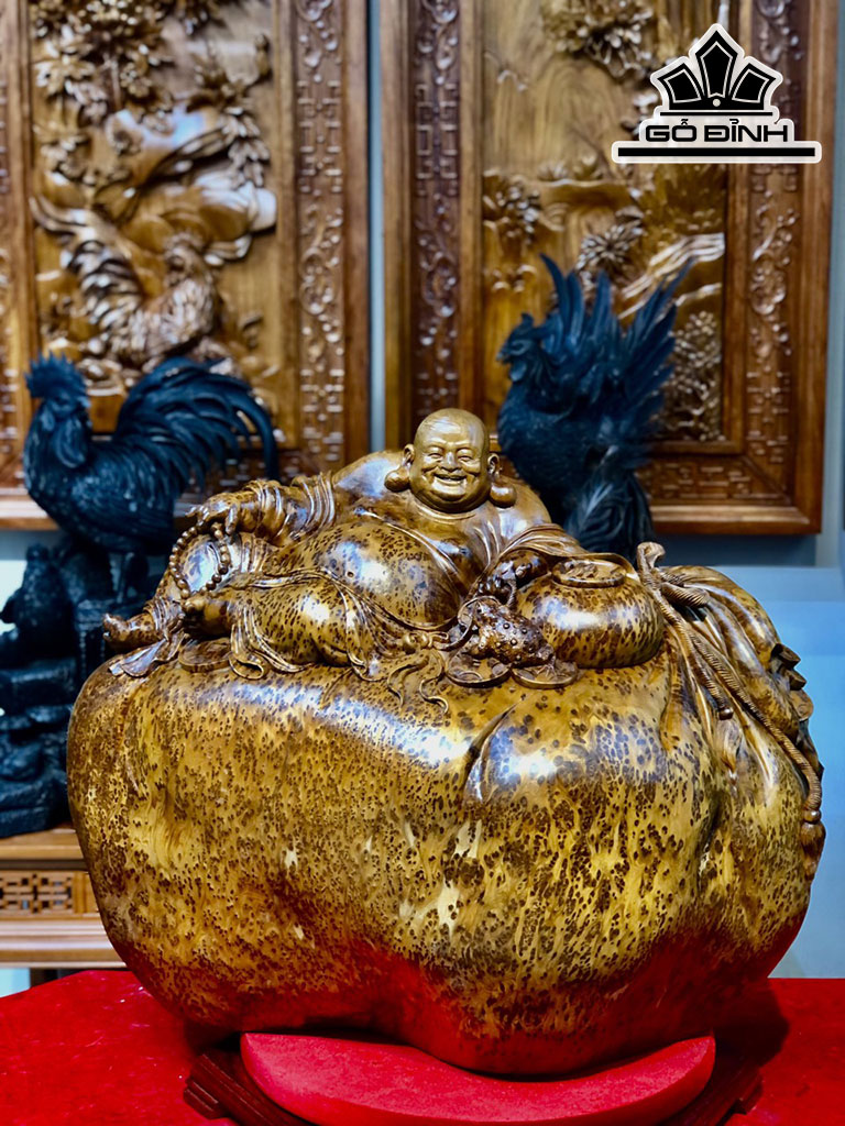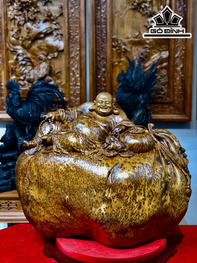 Tượng Phật Di Lặc Ngồi Bao Tiền Gỗ Nu Ngọc Am Cao 53 Ngang 75 Sâu 38 (cm)