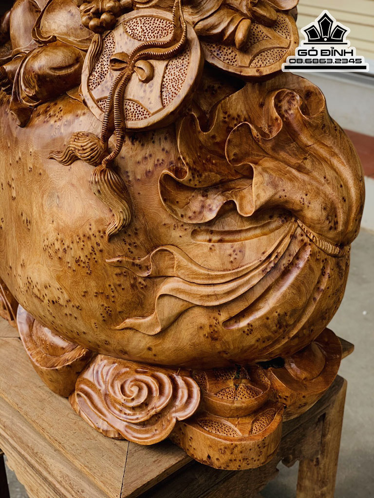 Tượng Phật Di Lặc Ngồi Bao Tiền Gỗ Nu Ngọc Am Nguyên Khối Cao 50 Ngang 50 Sâu 22 (cm)