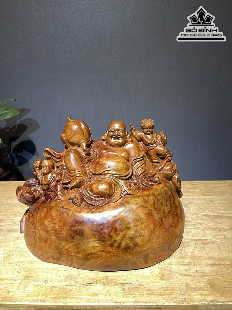 Tượng Phật Di Lặc Ngồi Bao Tiền Gỗ Nu Xá Xị Dài 58 Cao 38 Sâu 30 (cm)