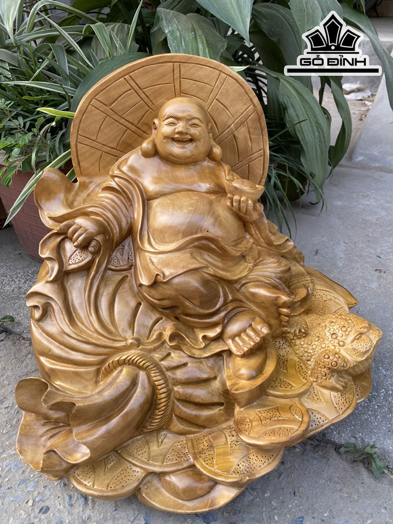 Tượng Phật Di Lặc Ngồi Bao Tiền Gỗ Xá Xị Cao 35 Ngang 38 Sâu 30 (cm)