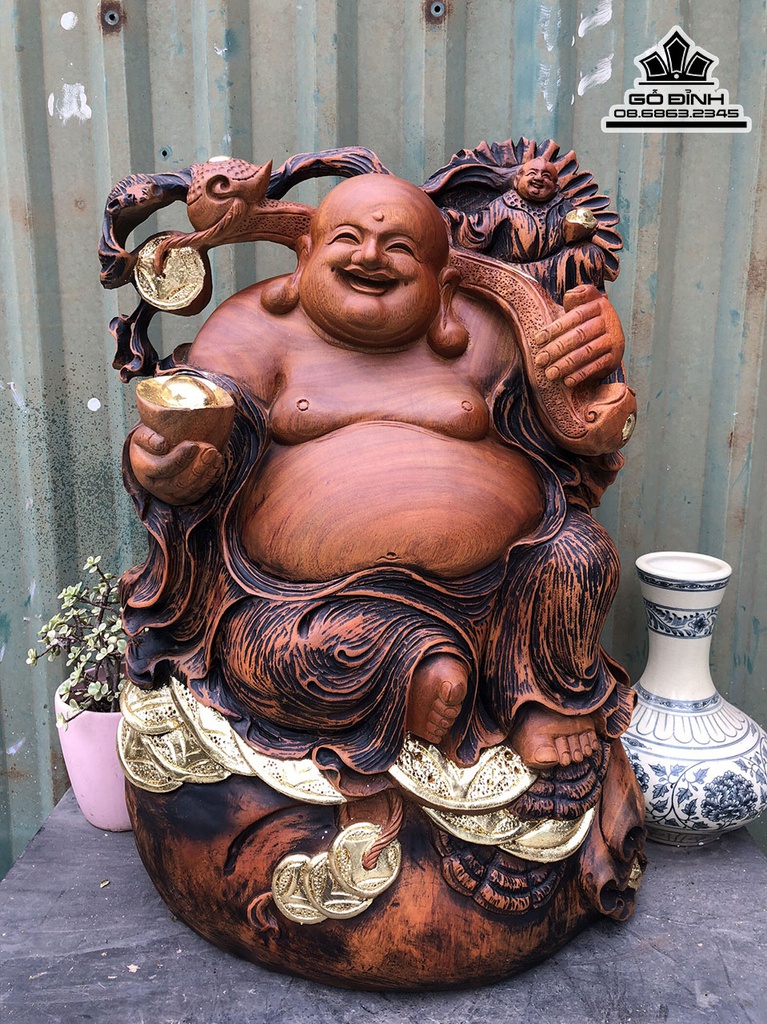 Tượng Phật Di Lặc Ngồi Bao Tiền Gỗ Xá Xị (Gù Hương)