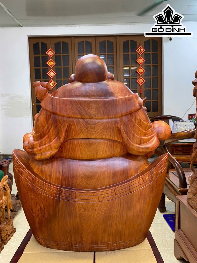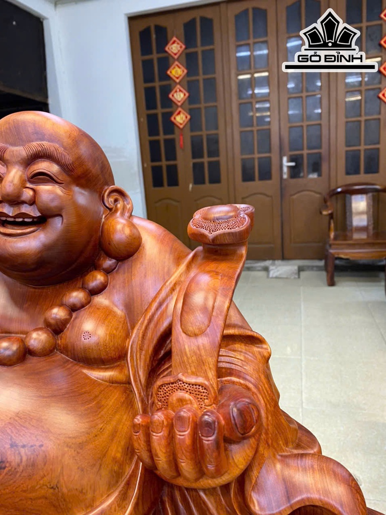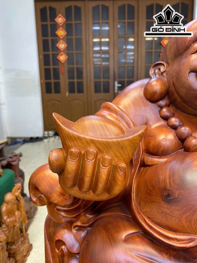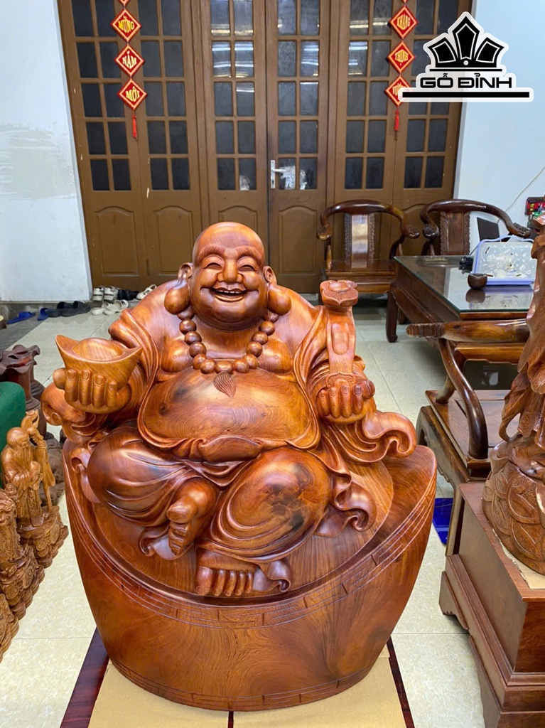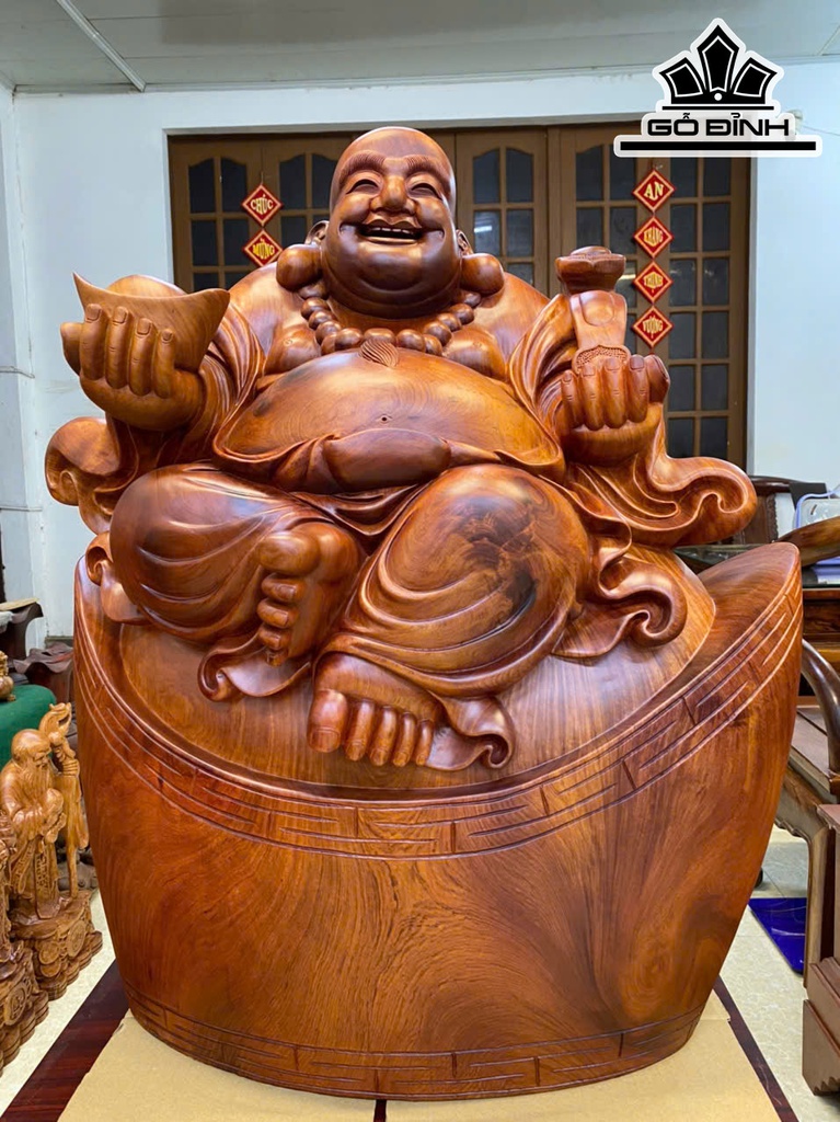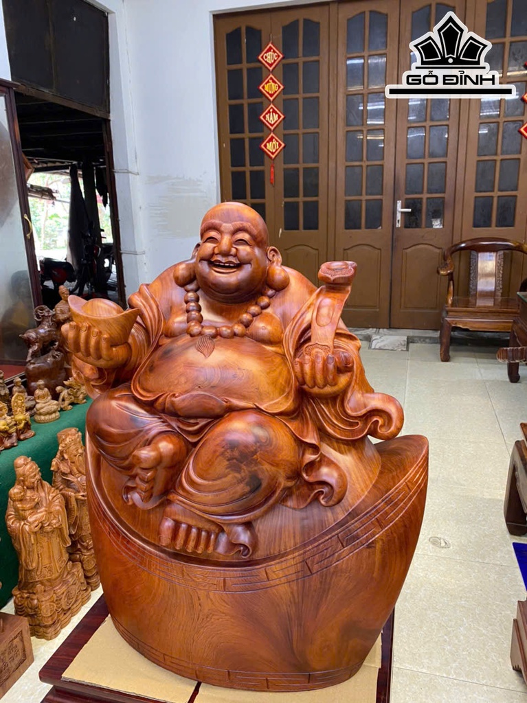 Tượng Phật Di Lặc Ngồi Bát Vàng Gỗ Hương Cao 68 Ngang 60 Sâu 35 (cm)