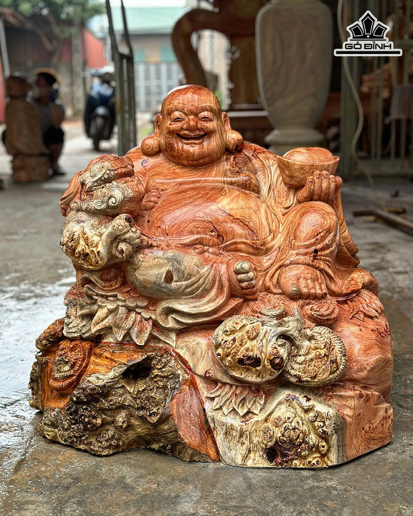 Tượng Phật Di Lặc Ngồi Bê Thỏi Vàng Gỗ Hương Cao 66 Ngang 65 Sâu 44 (cm)