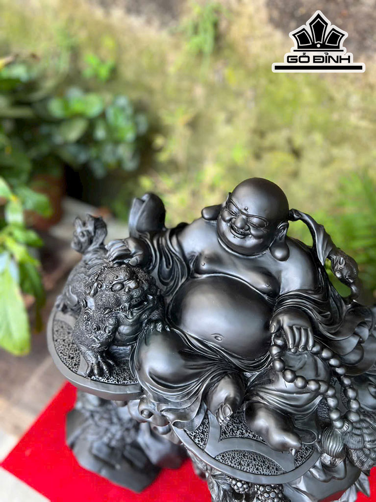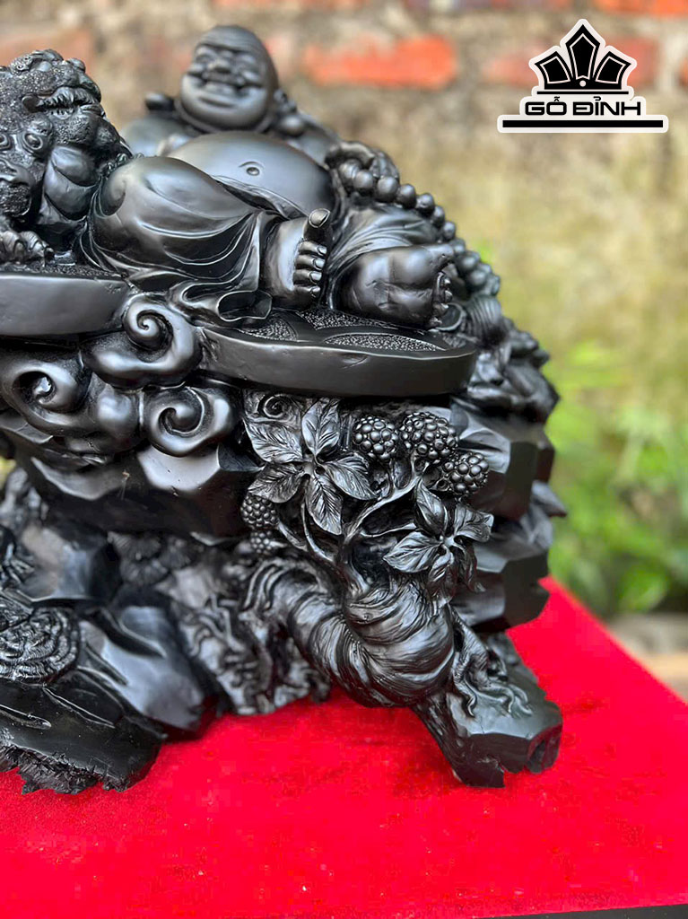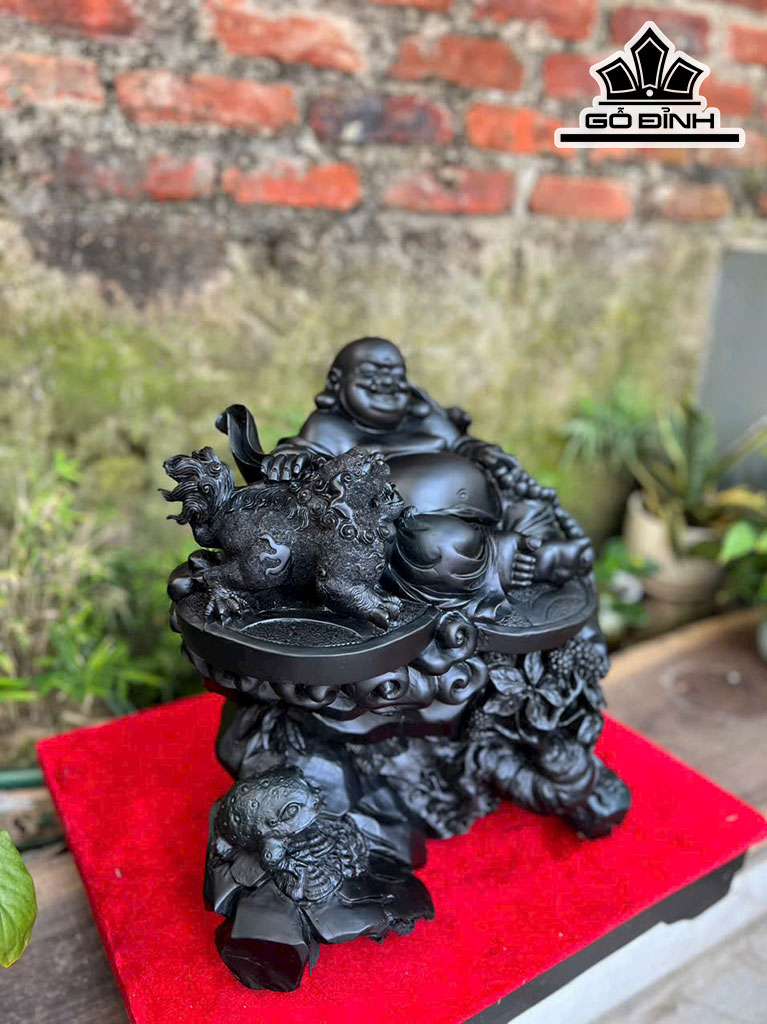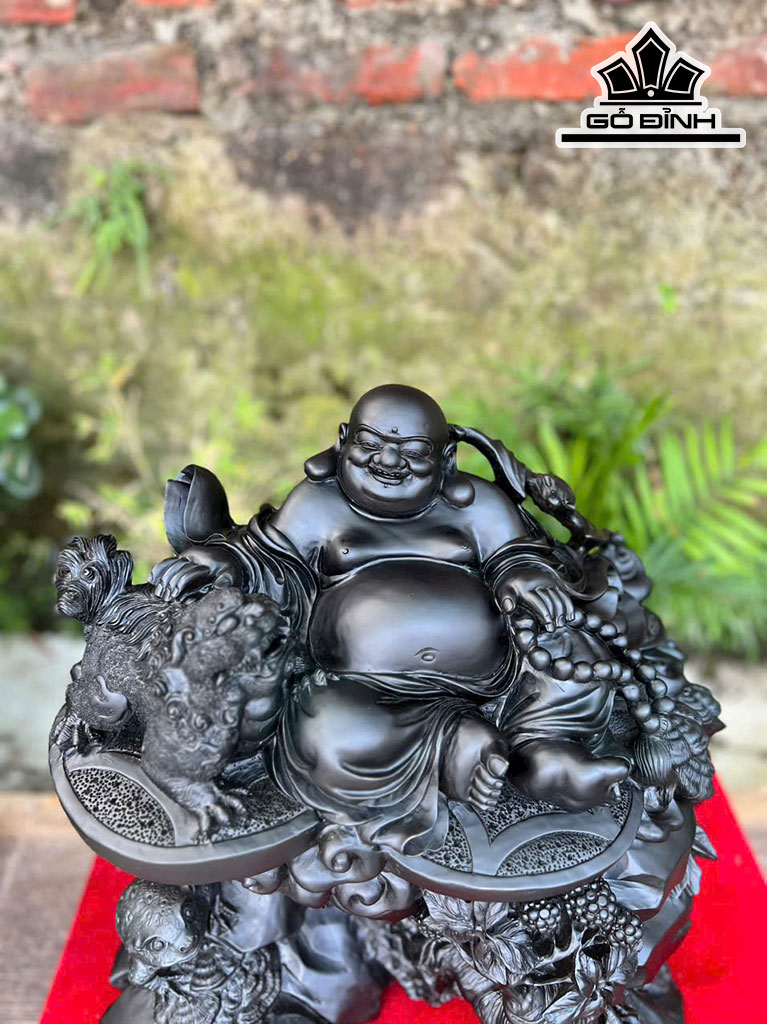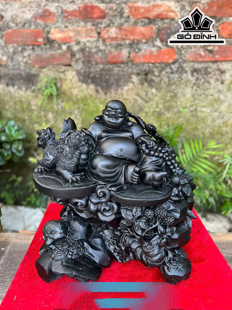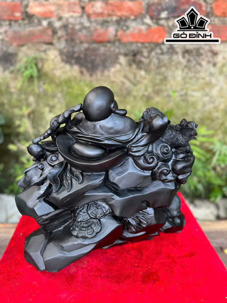 Tượng Phật Di Lặc Ngồi Chum Tiền Gỗ Mun Sừng Cao 40 Ngang 42 Sâu 30 (cm)