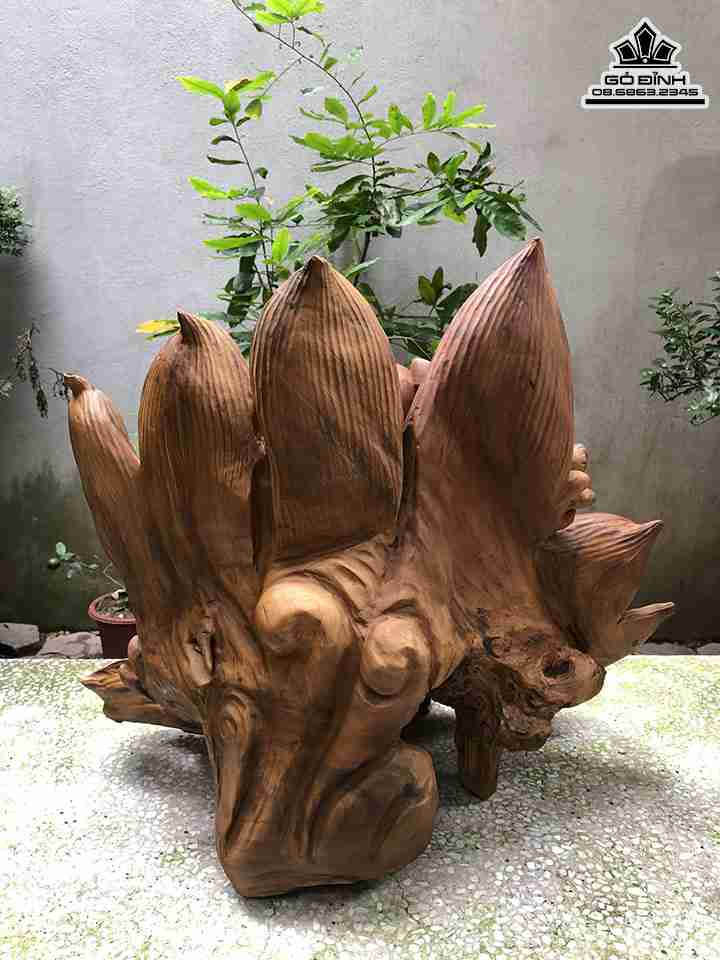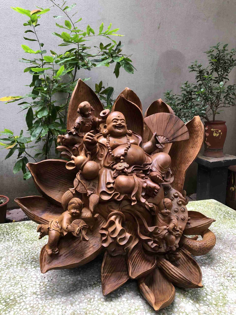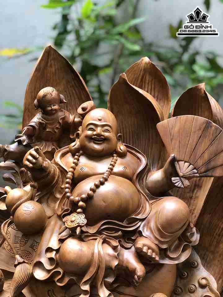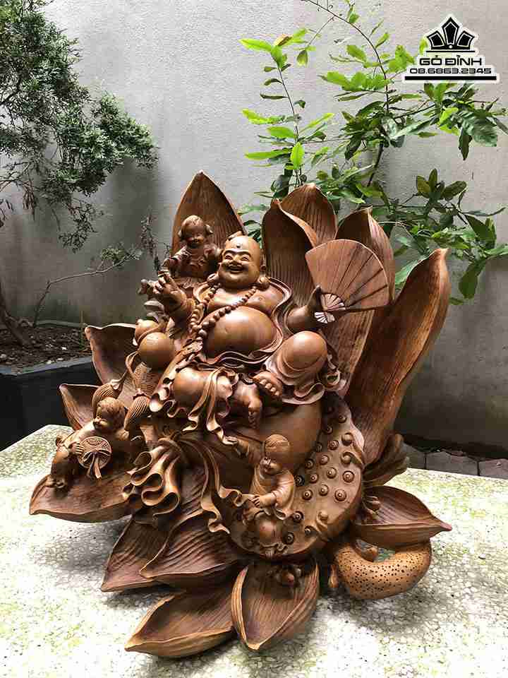 Tượng Phật Di Lặc Ngồi Đài Sen Gỗ Bách Xanh Cao 56 Ngang 63 Sâu 50 (cm)