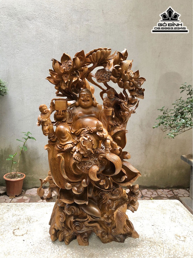 Tượng Phật Di Lặc Ngồi Đài Sen Gỗ Bách Xanh