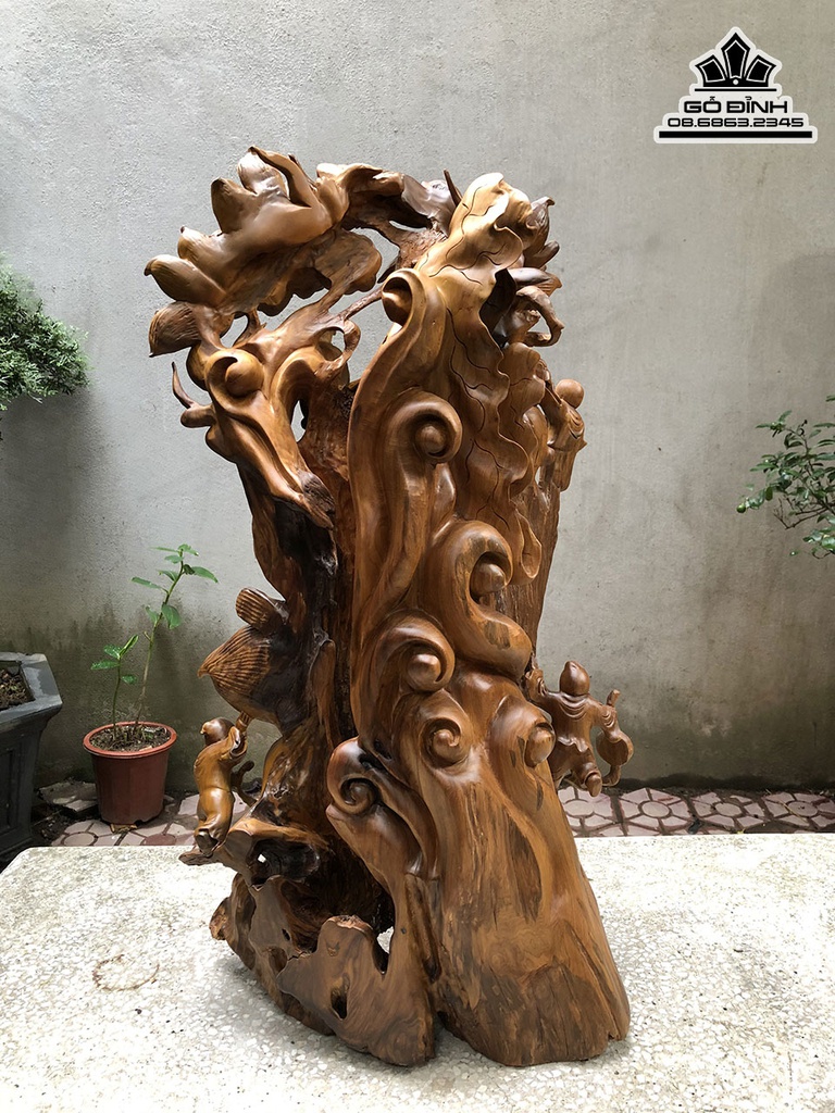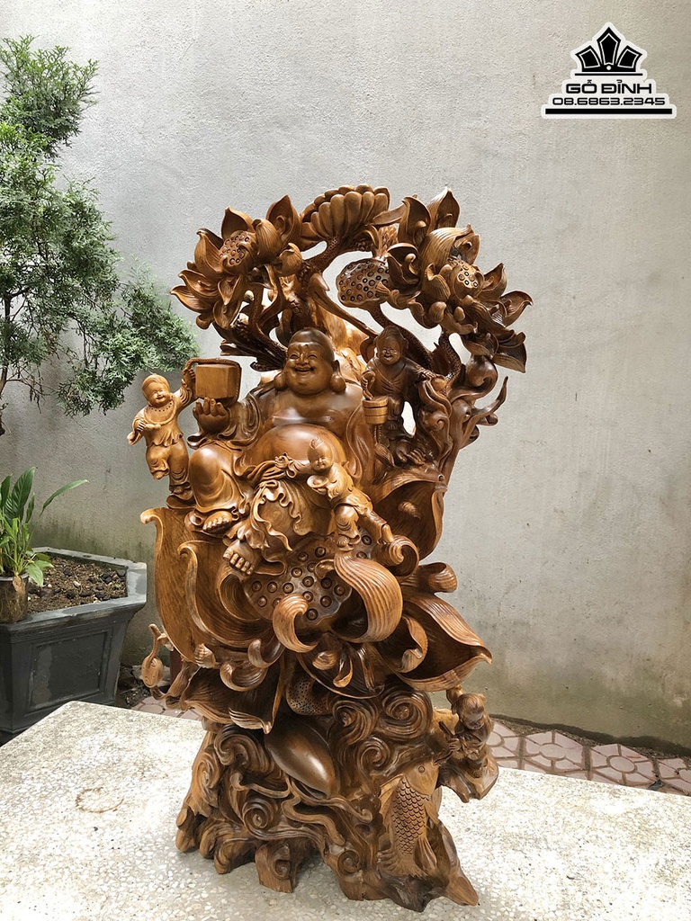 Tượng Phật Di Lặc Ngồi Đài Sen Gỗ Bách Xanh