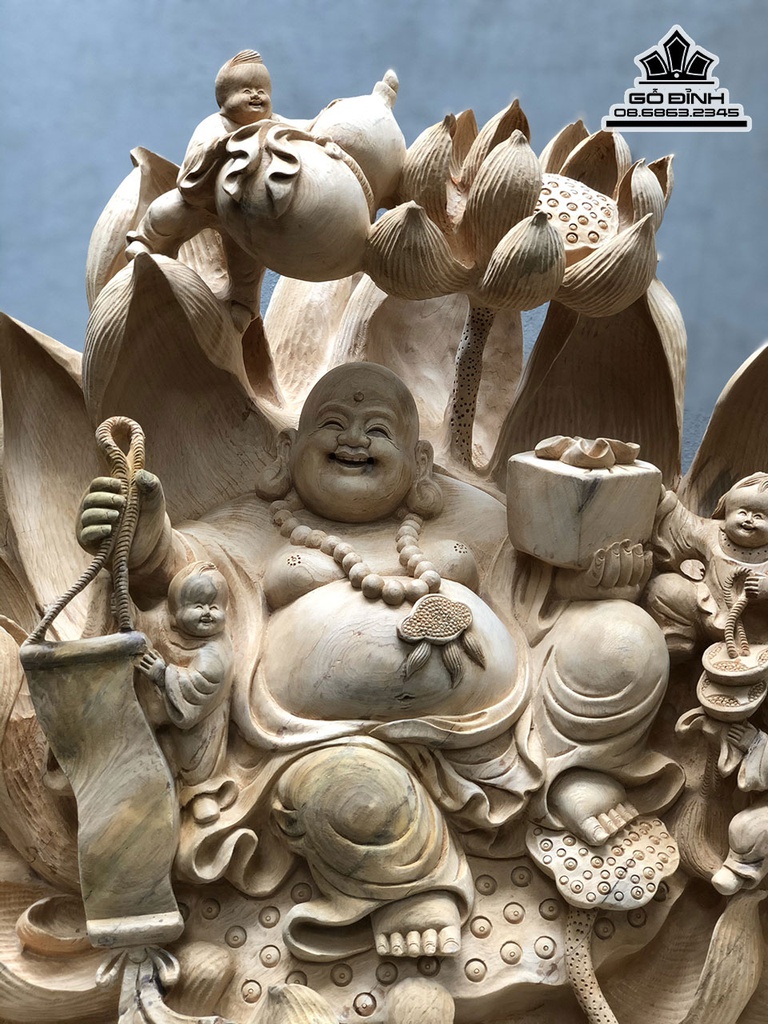 Tượng Phật Di Lặc Ngồi Đài Sen Gỗ Ngọc Am