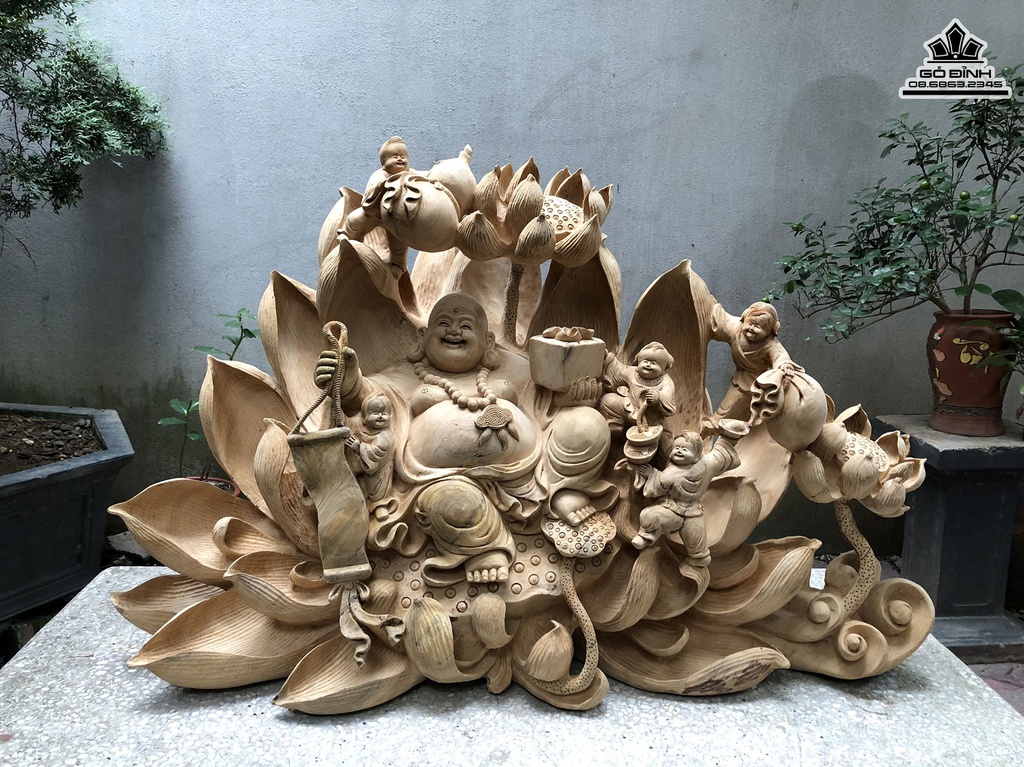 Tượng Phật Di Lặc Ngồi Đài Sen Gỗ Ngọc Am Cao 56 Ngang 100 Sâu 43 (cm)