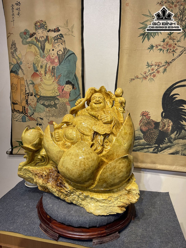 Tượng Phật Di Lặc Ngồi Đài Sen Gỗ Nu Kháo Cao 68 Ngang 56 Sâu 35 (cm)