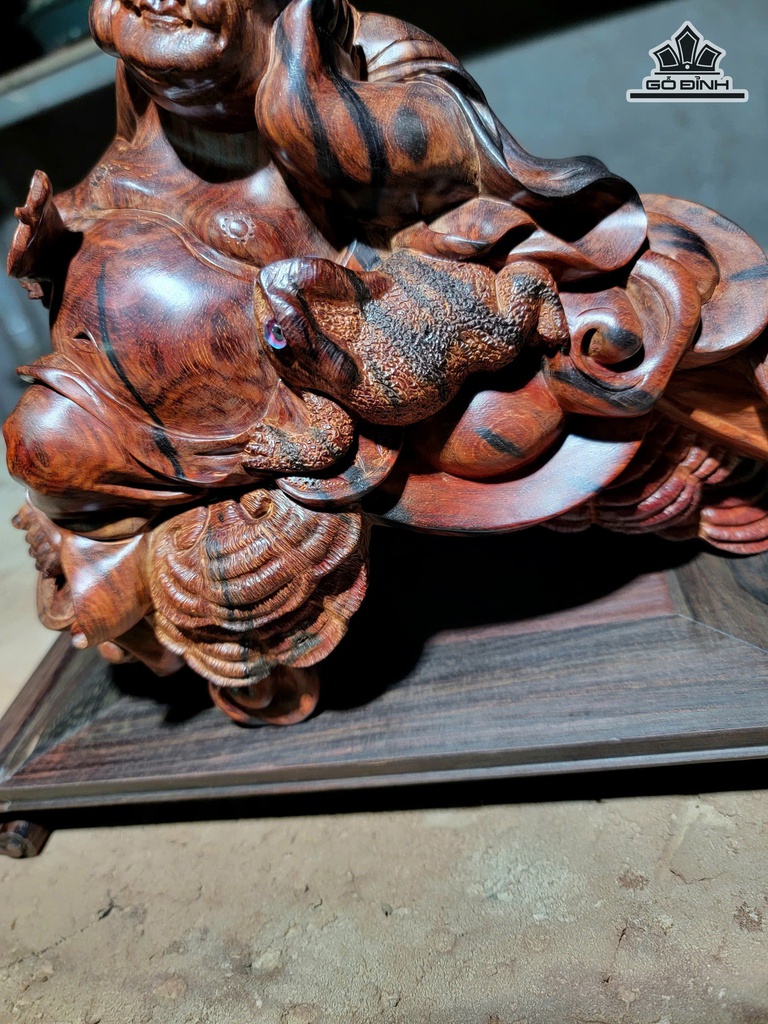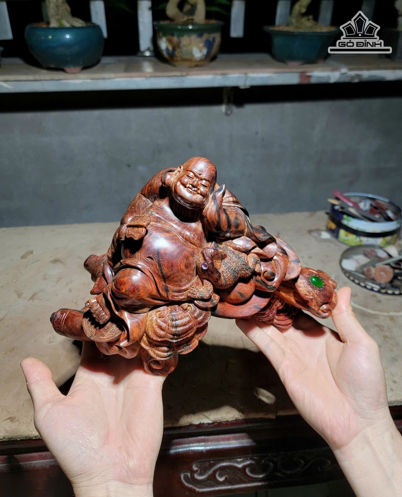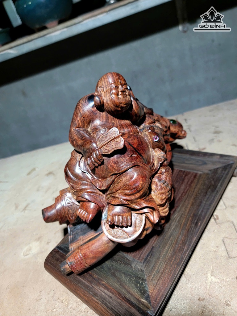 Tượng Phật Di Lặc Ngồi Gậy Như Ý Gỗ Trắc Cao 18,5 Ngang 18,5 Sâu 15 (cm)