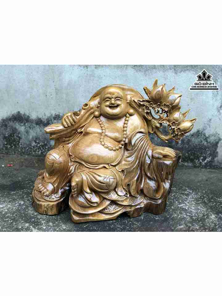 Tượng Phật Di Lặc Ngồi Gỗ Bách Xanh Cao 39 Ngang 41 Sâu 25 (cm)