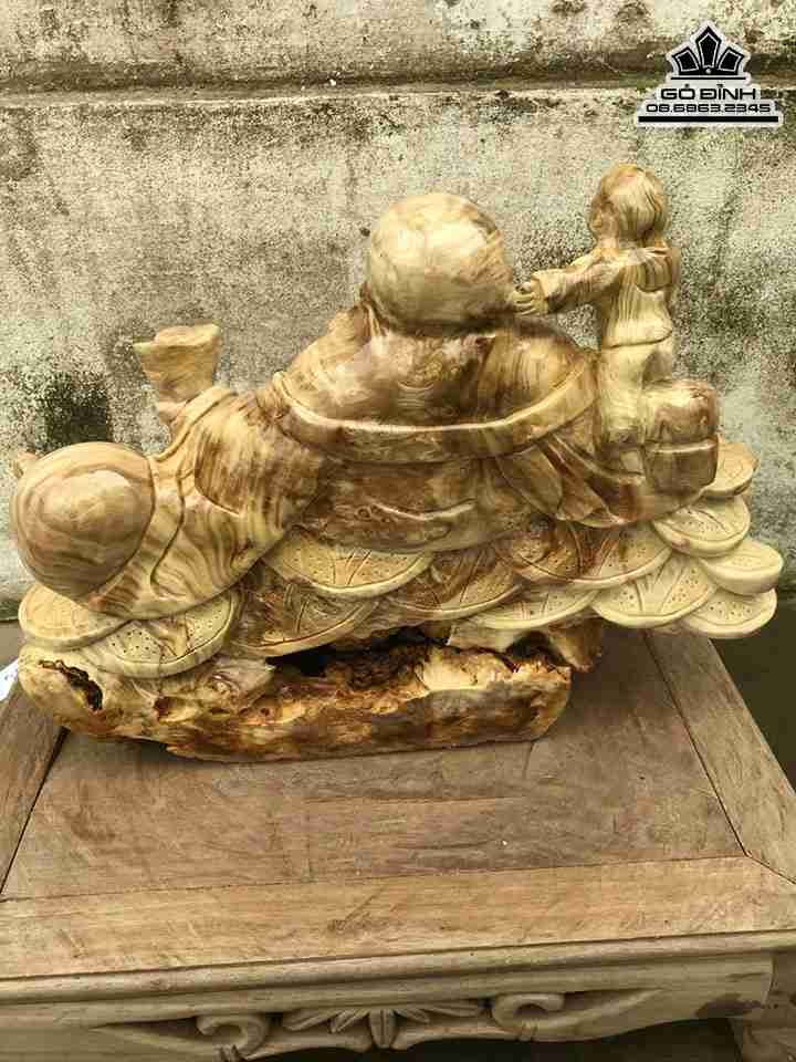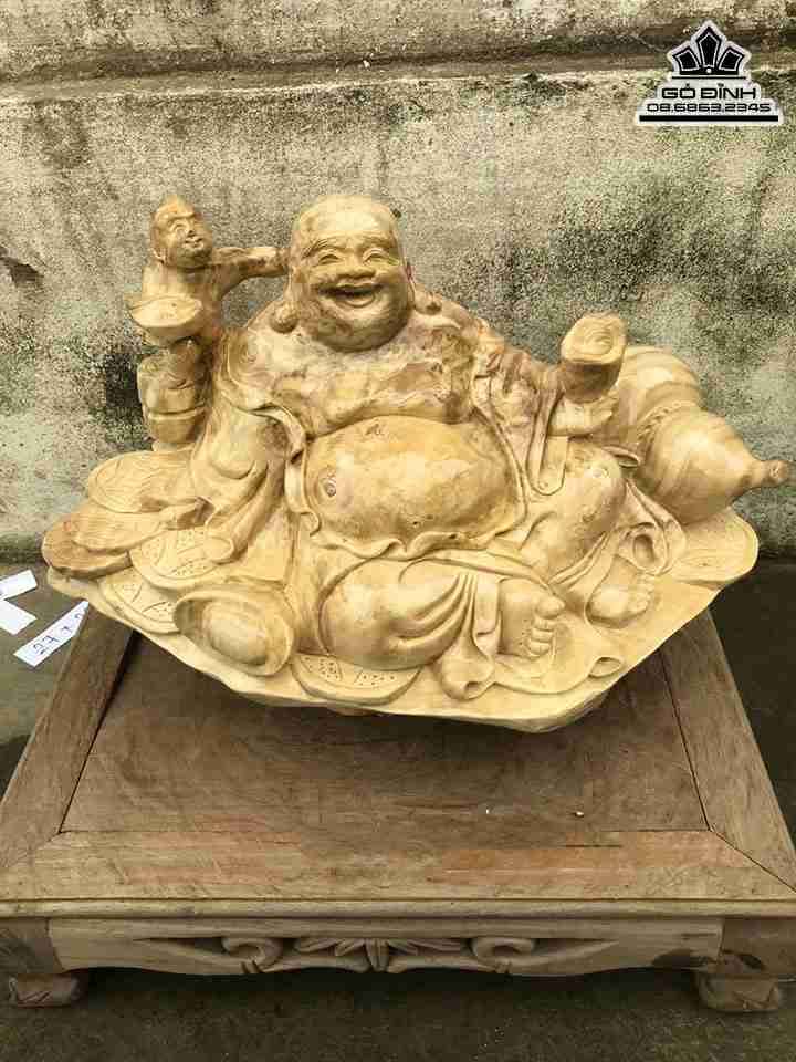 Tượng Phật Di Lặc Ngồi Gỗ Nu Nghiến Cao 20 Ngang 44 Sâu 33 (cm)