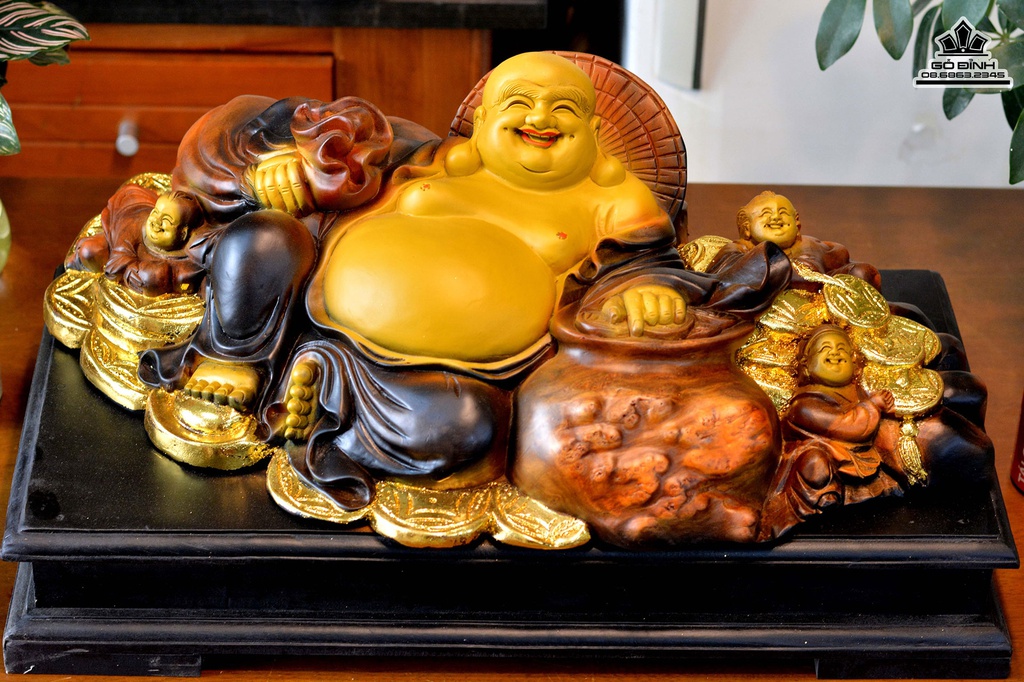 Tượng Phật Di Lặc Ngồi Gỗ Xá Xị (Gù Hương) Cao 30 Ngang 60 Sâu 36 (cm)