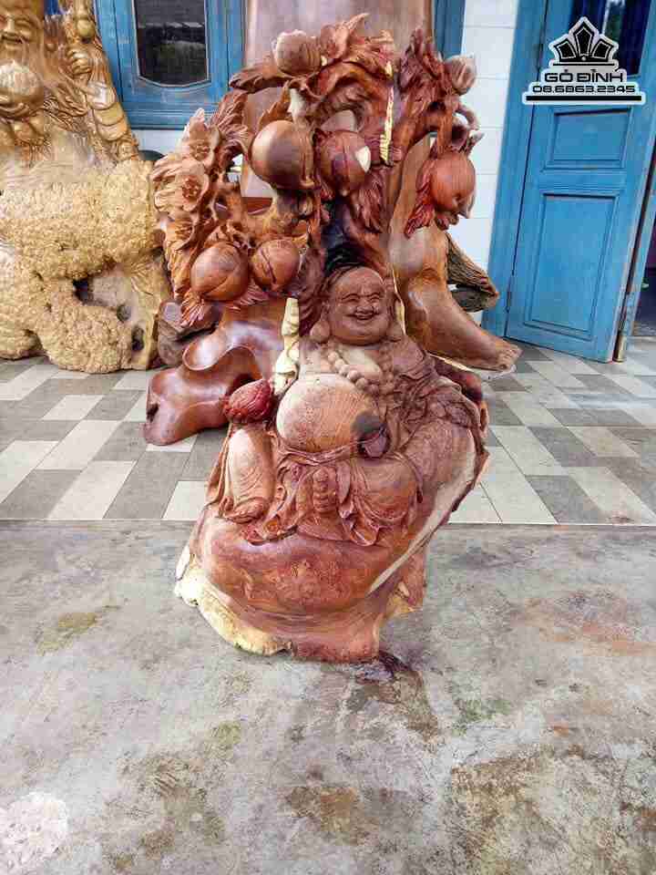 Tượng Phật Di Lặc Ngồi Gốc Đào Gỗ Nu Hương Cao 77 Ngang 45 Sâu 35 (cm)