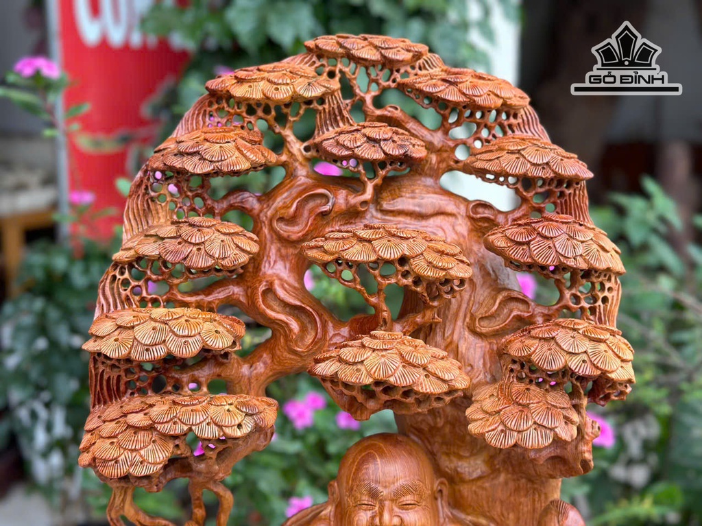 Tượng Phật Di Lặc Ngồi Gốc Cây Tùng Gỗ Hương Cao 68 Ngang 46 Sâu 25 (cm)