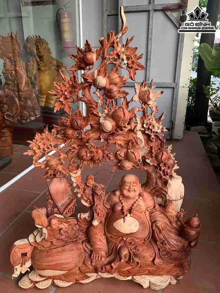 Tượng Phật Di lặc Ngồi Gốc Đào Gỗ Hương Việt Cao 104 Ngang 78 Sâu 40 (cm)
