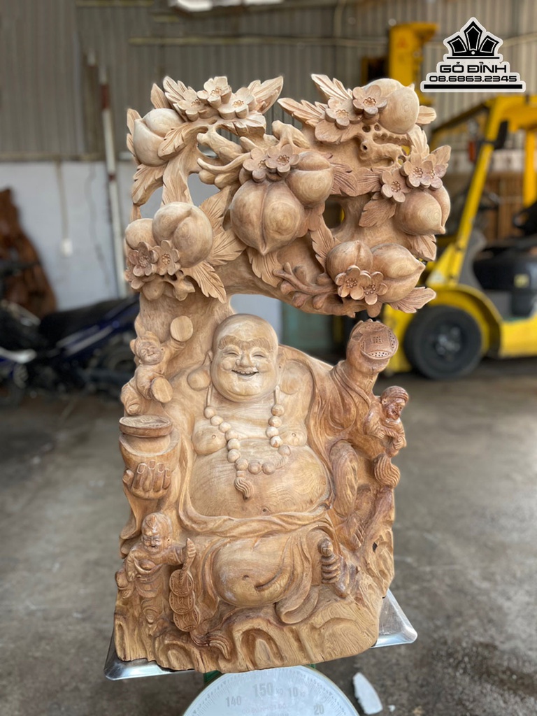 Tượng Phật Di Lặc Ngồi Gốc Đào Gỗ Ngọc Am Cao 82 Ngang 47 Sâu 28 (cm)
