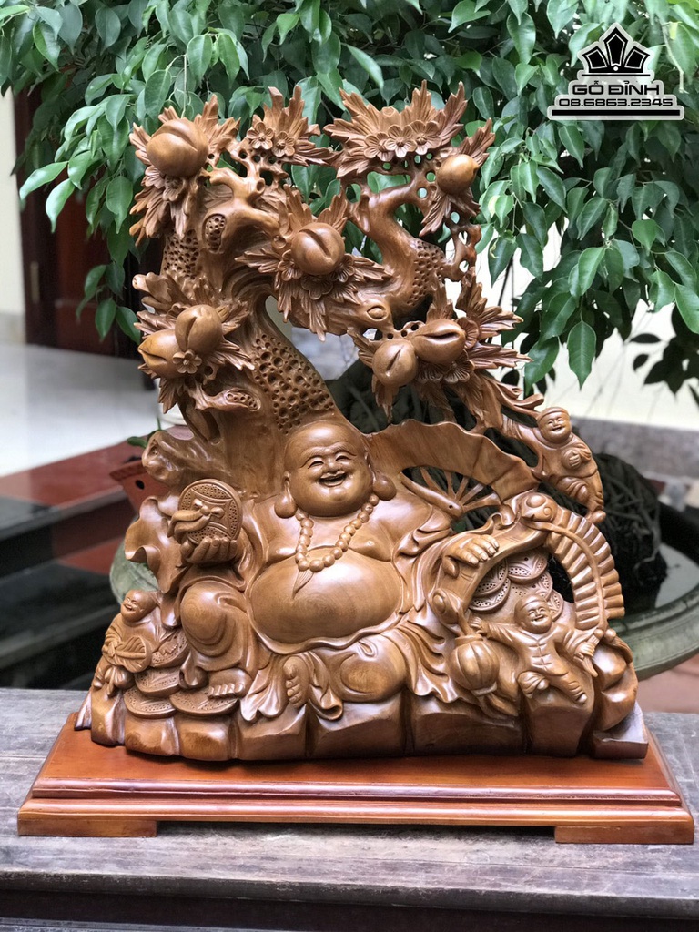 Tượng Phật Di Lặc Ngồi Gốc Đào Gỗ Xá Xị (Gù Hương)