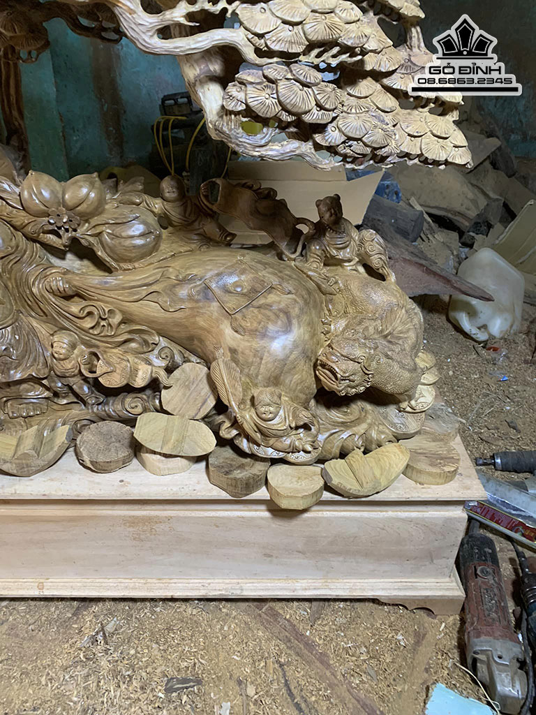 Tượng Phật Di lặc Ngồi Gốc Tùng Gỗ Bách Xanh Cao 100 Ngang 91 Sâu 30 (cm)