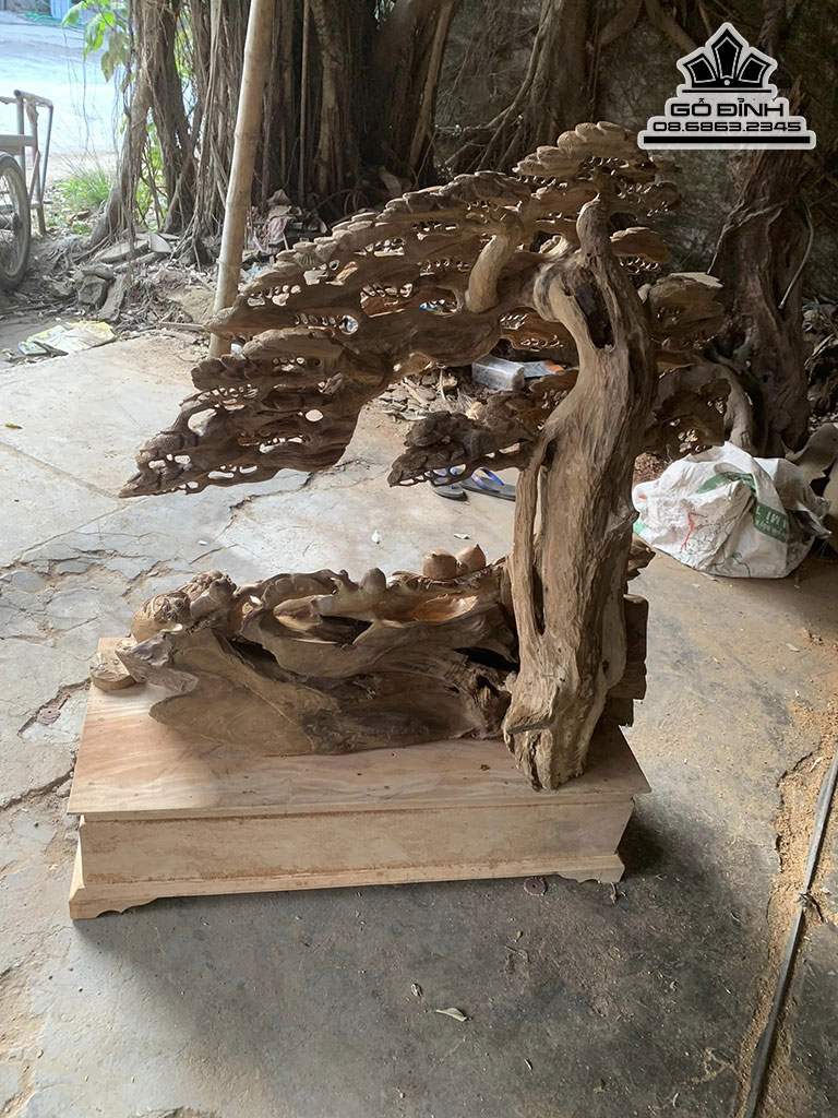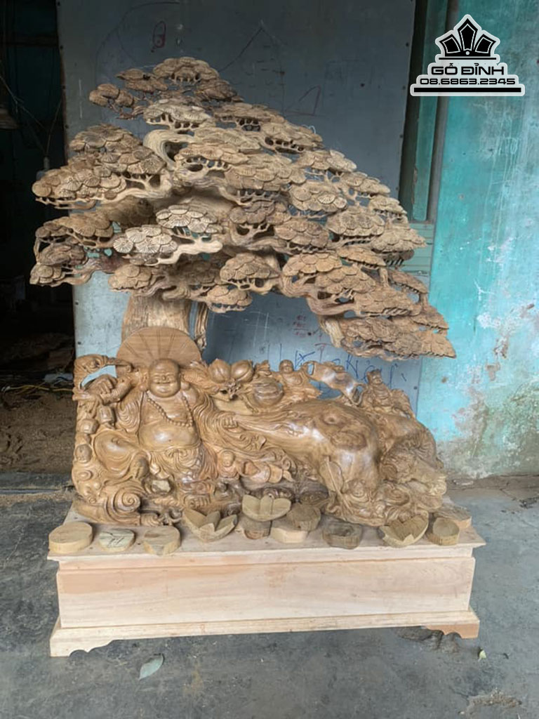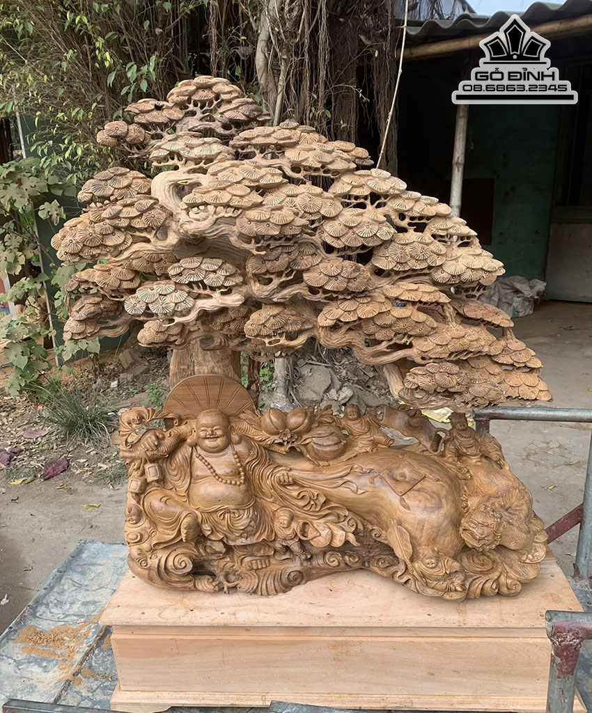 Tượng Phật Di lặc Ngồi Gốc Tùng Gỗ Bách Xanh