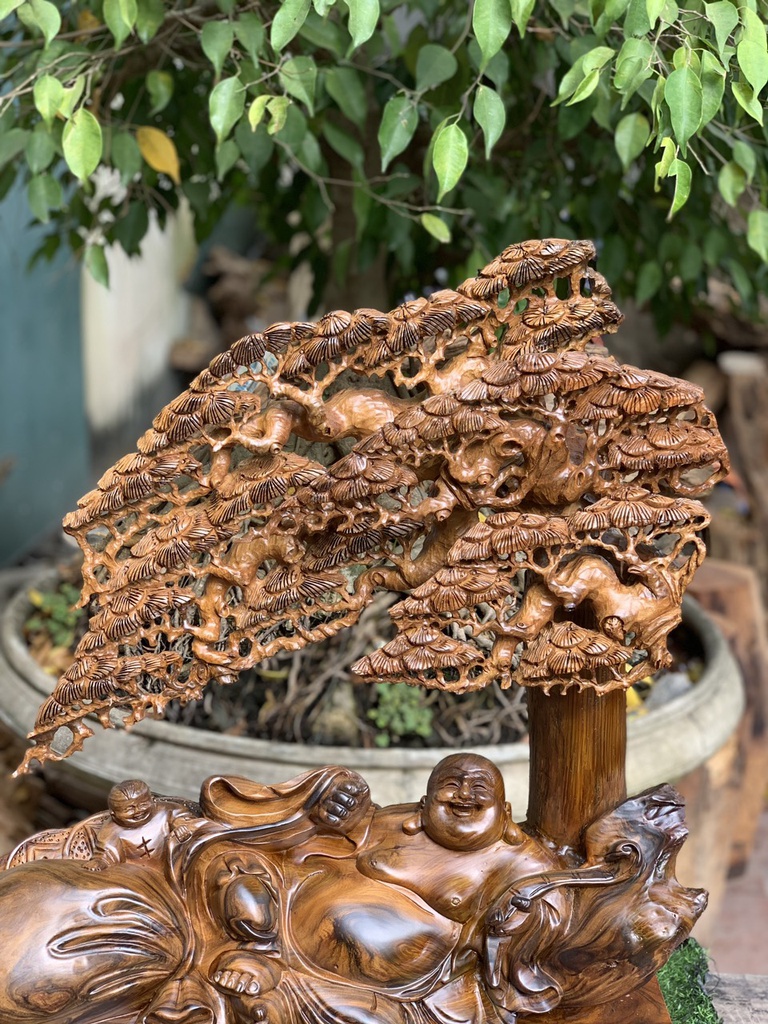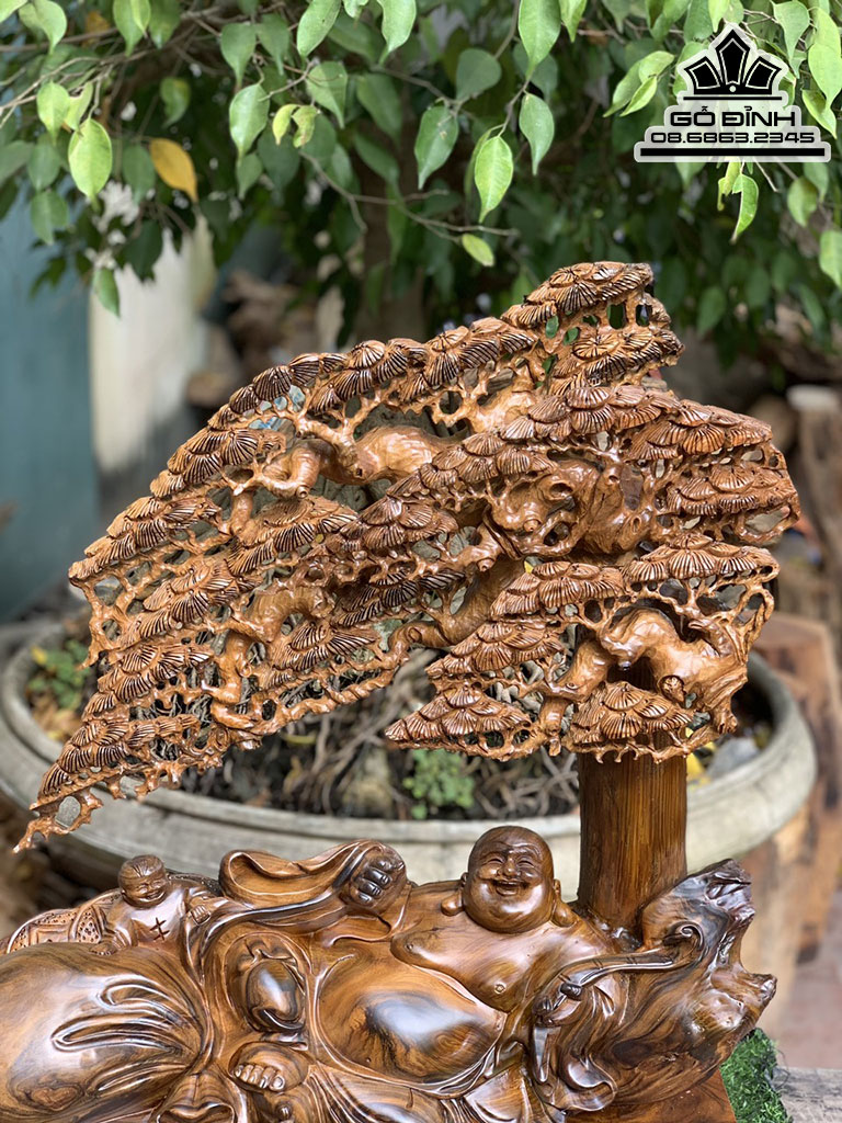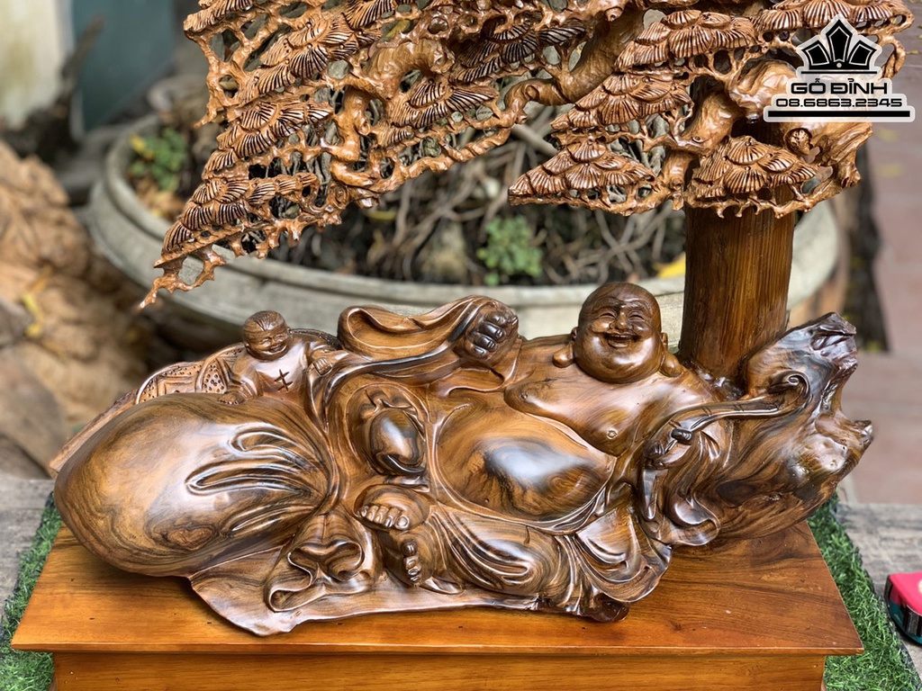 Tượng Phật Di Lặc Ngồi Gốc Tùng Gỗ Bách Xanh