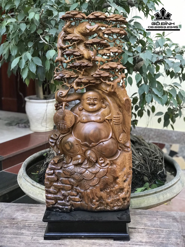 Tượng Phật Di Lặc Ngồi Gốc Tùng Gỗ Bách Xanh
