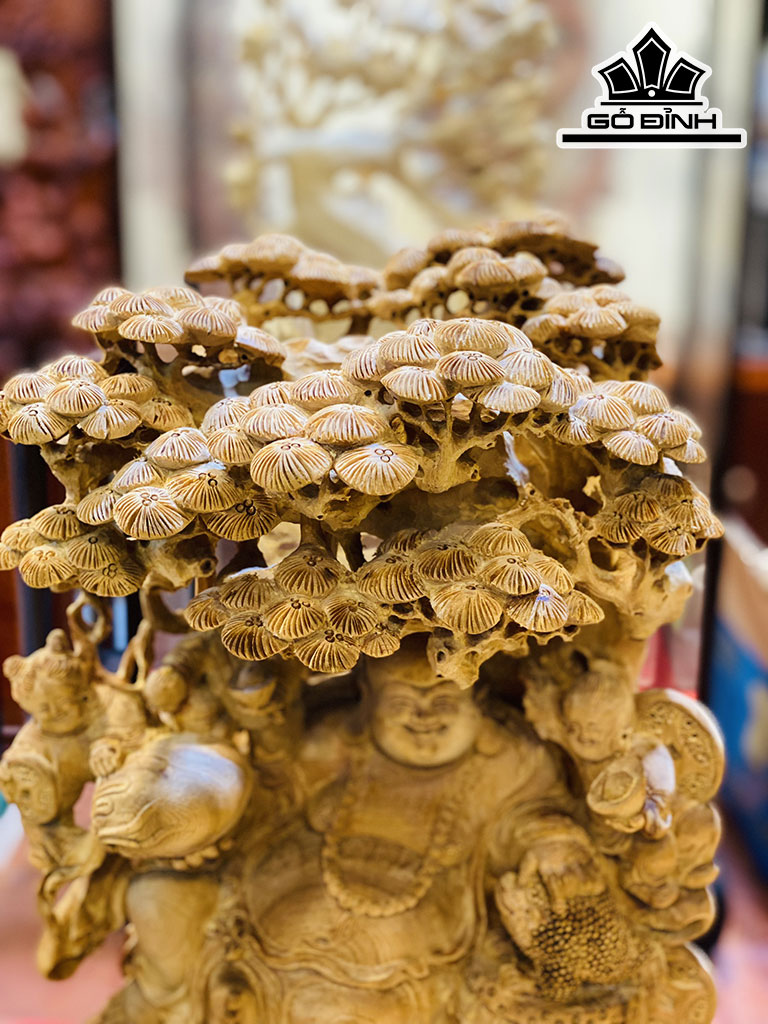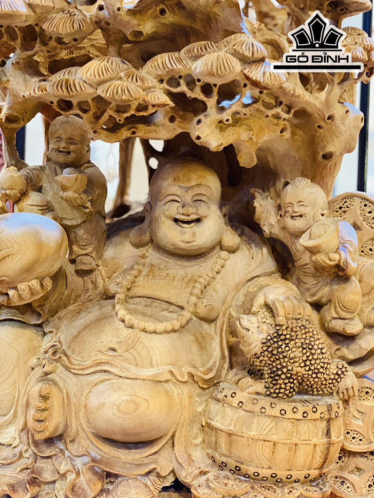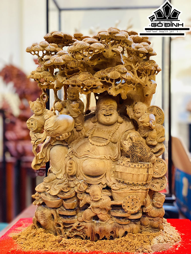 Tượng Phật Di Lặc Ngồi Gốc Tùng Gỗ Hoàng Đàn