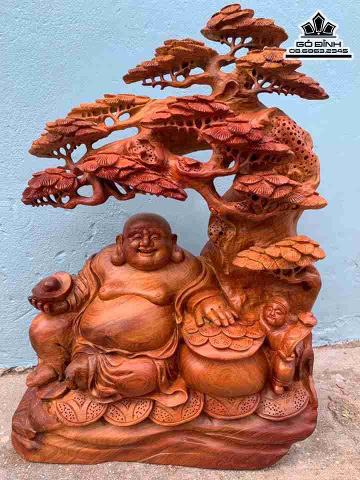 Tượng Phật Di Lặc Ngồi Gốc Tùng Gỗ Hương Cao 56 Ngang 39 Sâu 15 (cm)