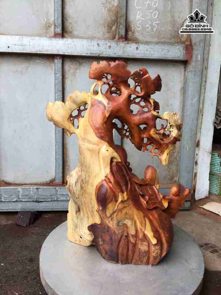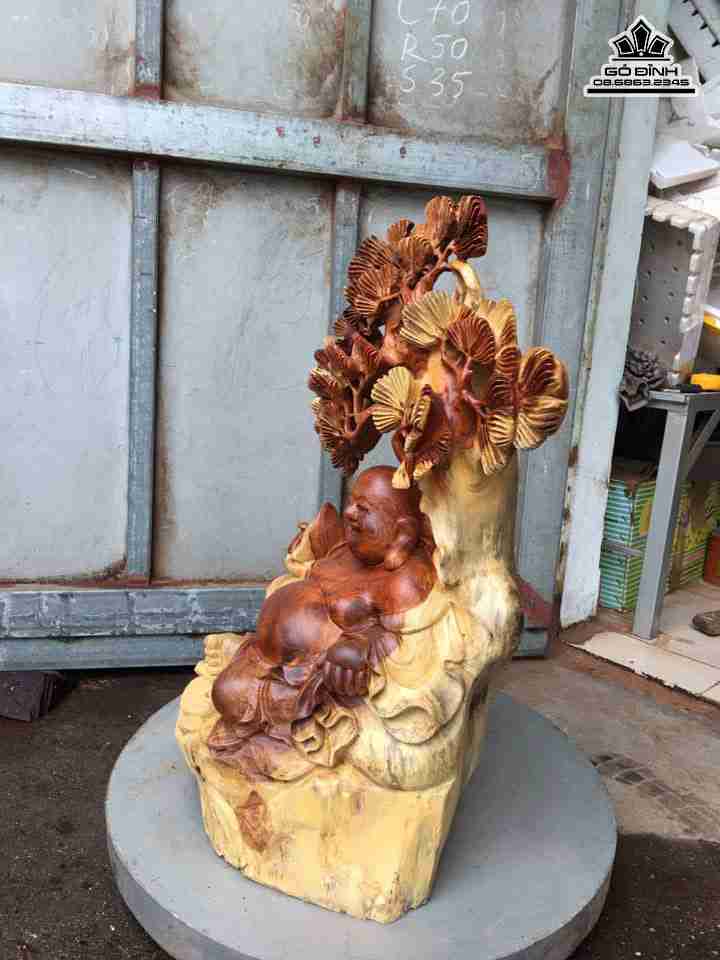 Tượng Phật Di Lặc ngồi gốc tùng gỗ hương cao70 rộng 50 sâu 35 (cm)