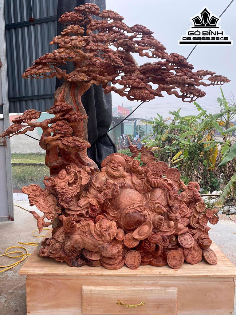 Tượng Phật Di Lặc Ngồi Gốc Tùng Gỗ Hương Cao 175 Rộng 125 Sâu 55(cm)