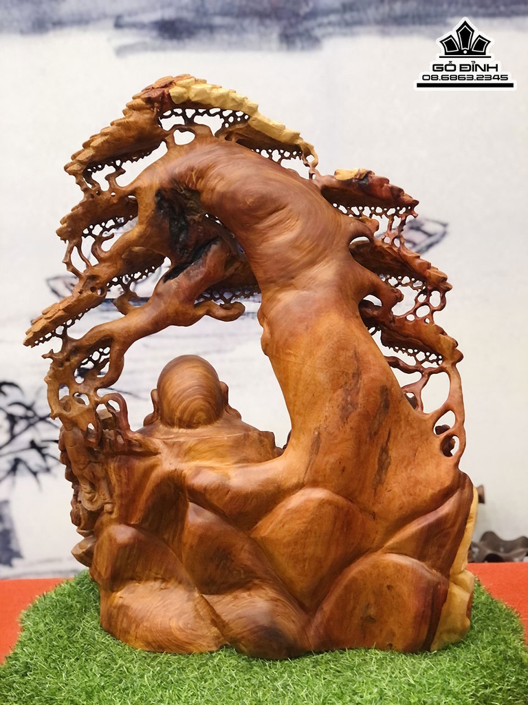 Tượng Phật Di Lặc Ngồi Gốc Tùng Gỗ Hương Cao 71 Ngang 55 Sâu 32 (cm)