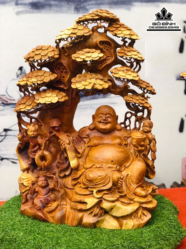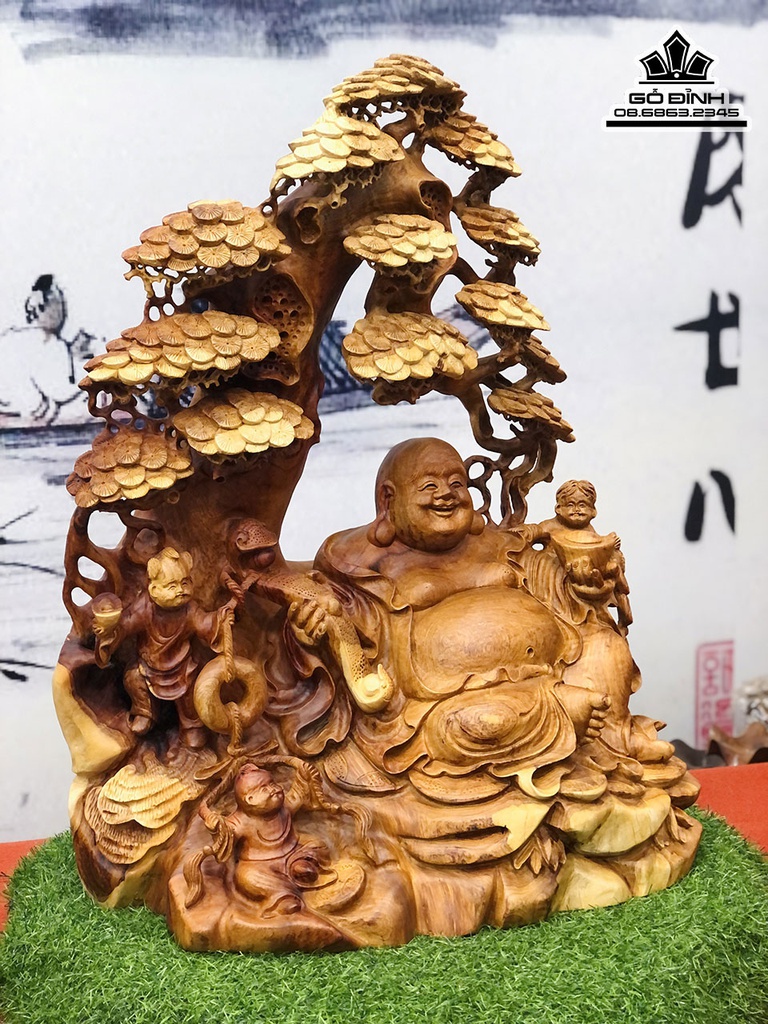 Tượng Phật Di Lặc Ngồi Gốc Tùng Gỗ Hương