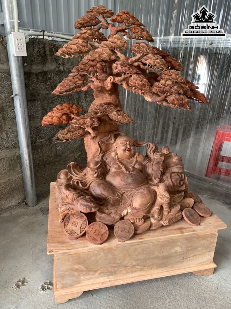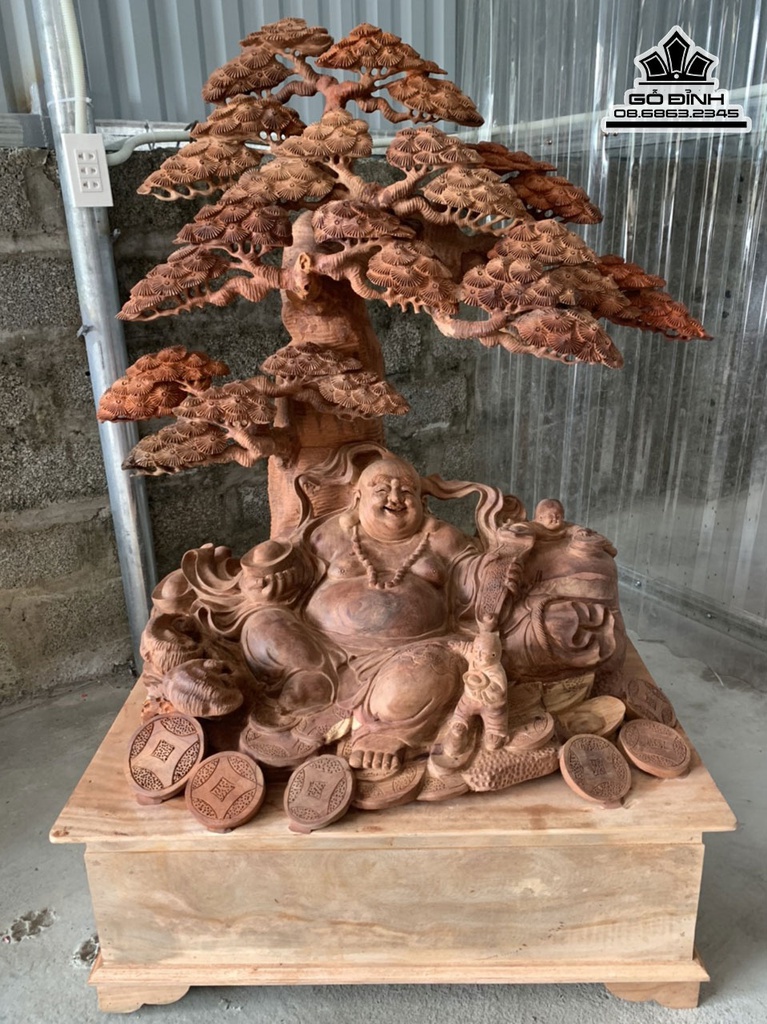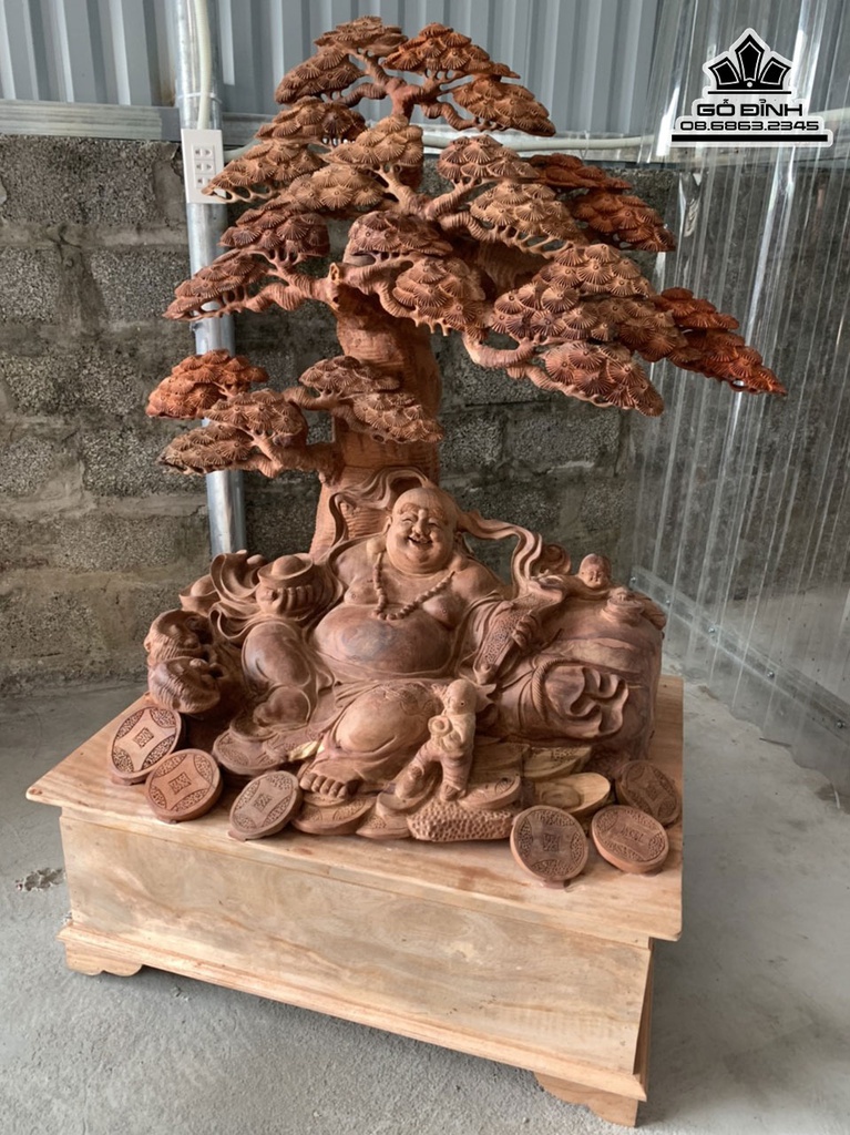 Tượng Phật Di Lặc Ngồi Gốc Tùng Gỗ Hương