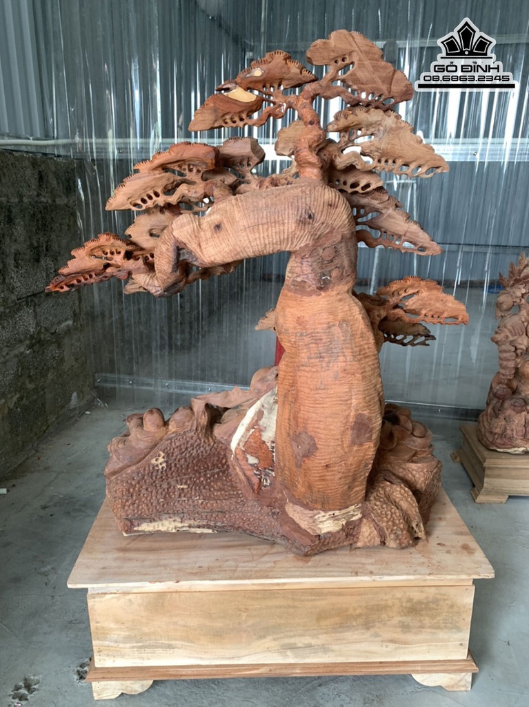 Tượng Phật Di Lặc Ngồi Gốc Tùng Gỗ Hương Cao Cả Kỷ 126 Ngang 87 Sâu 56 (cm)