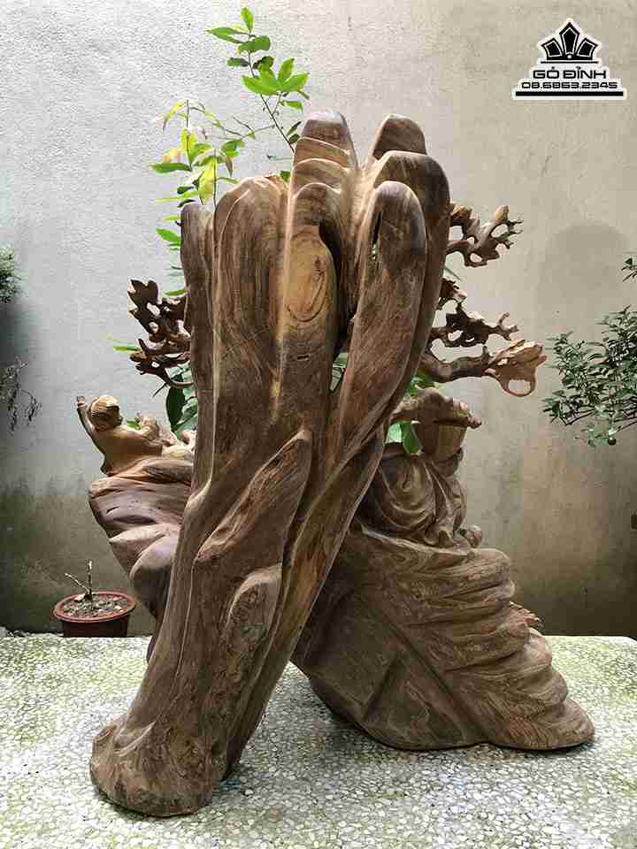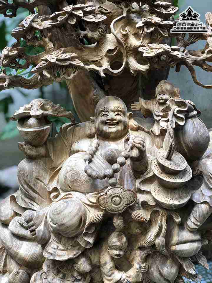 Tượng Phật Di Lặc Ngồi Gốc Tùng Gỗ Ngọc Am