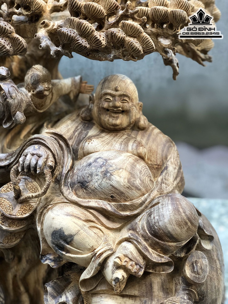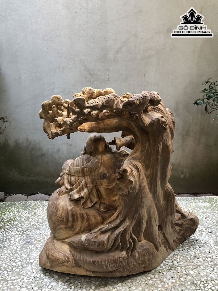 Tượng Phật Di Lặc Ngồi Gốc Tùng Gỗ Ngọc Am