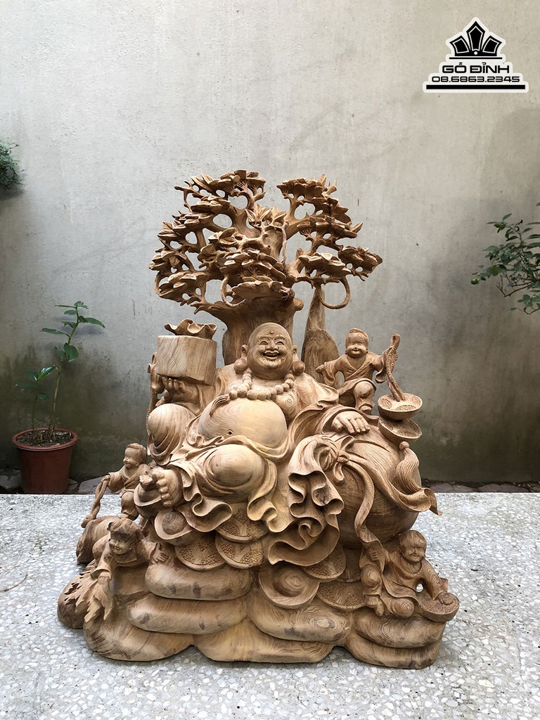 Tượng Phật Di Lặc Ngồi Gốc Tùng Gỗ Ngọc Am Cao 58 ngang 50 Sâu 33 (cm)