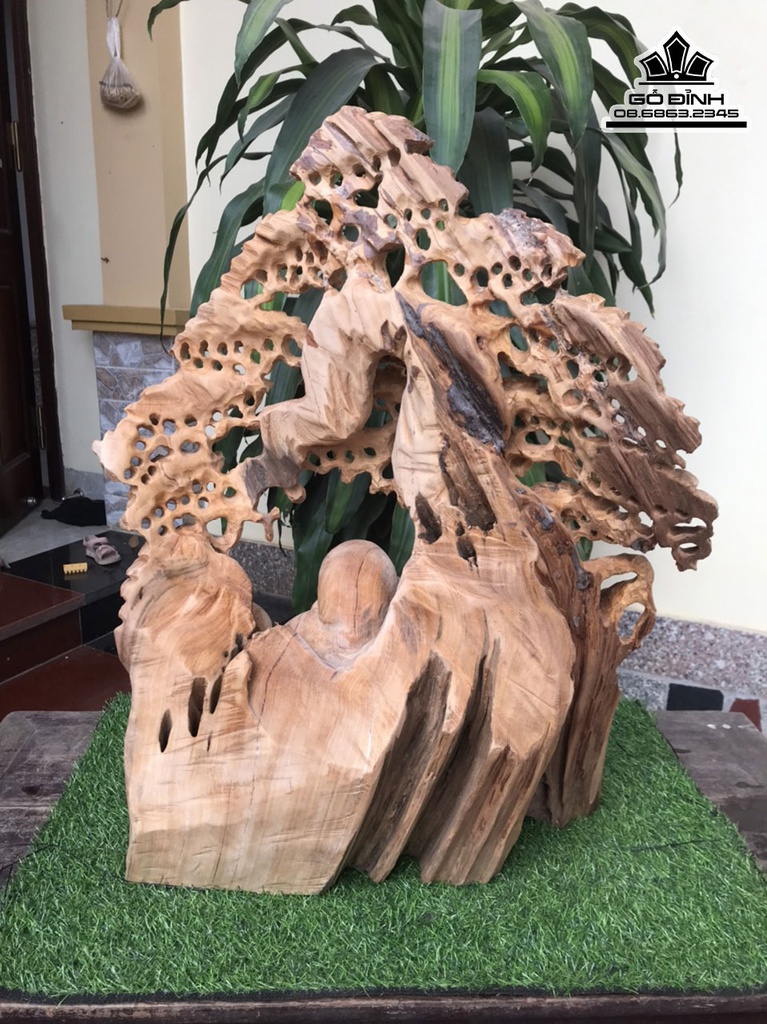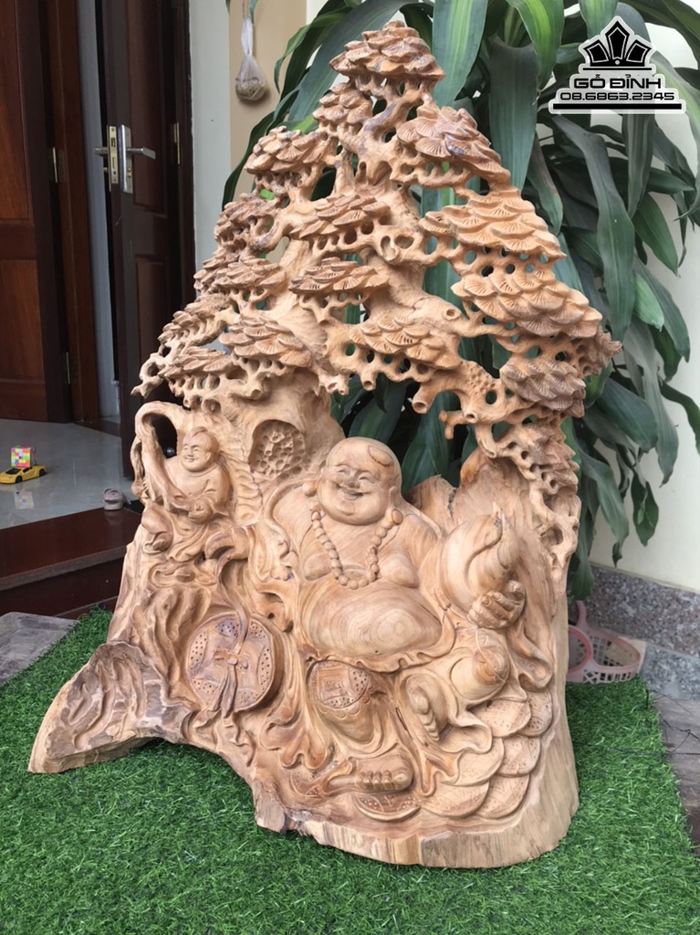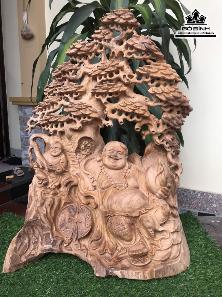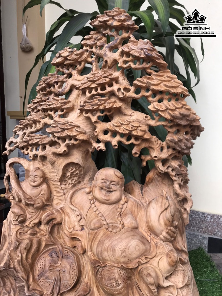Tượng Phật Di Lặc Ngồi Gốc Tùng Gỗ Ngọc Am