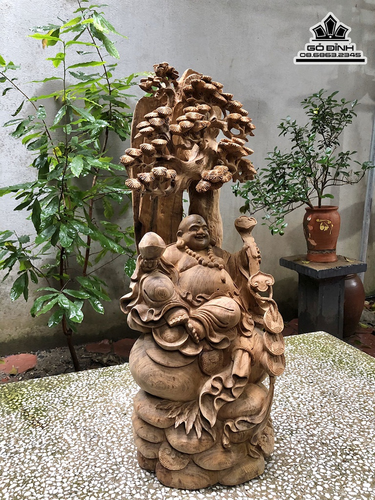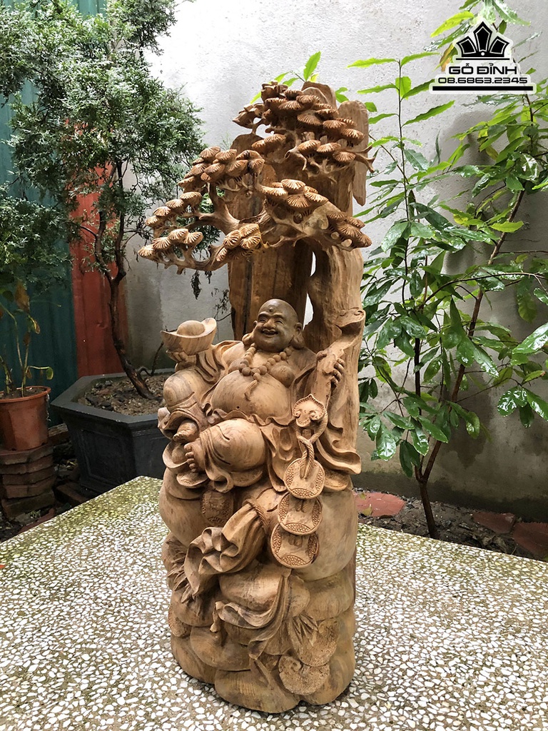 Tượng Phật Di Lặc Ngồi Gốc Tùng Gỗ Ngọc Am Cao 75 Ngang 30 Sâu 25 (cm)