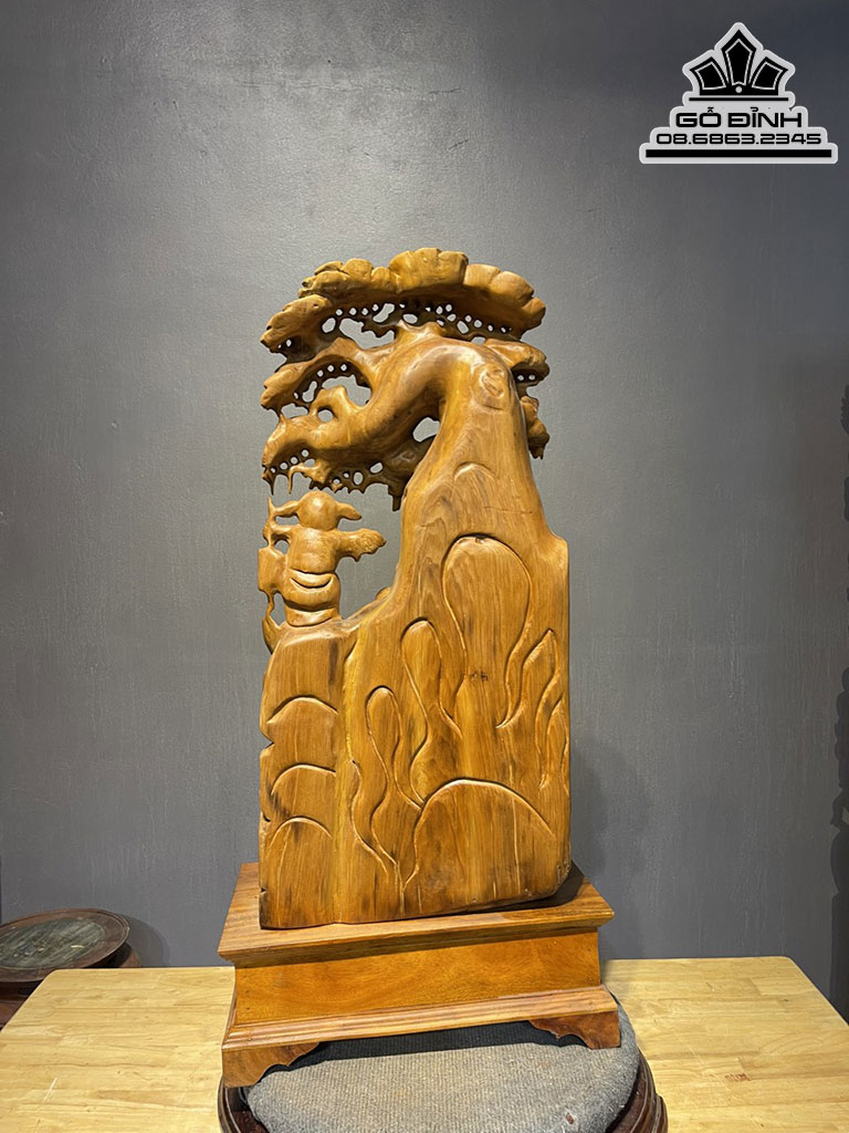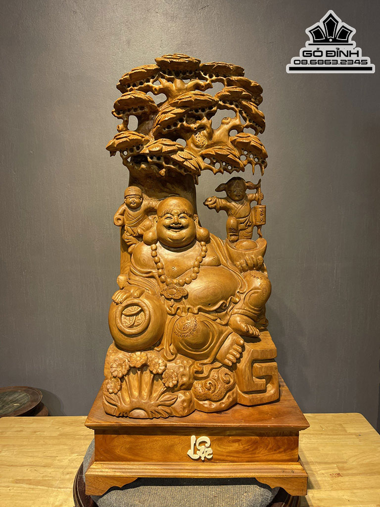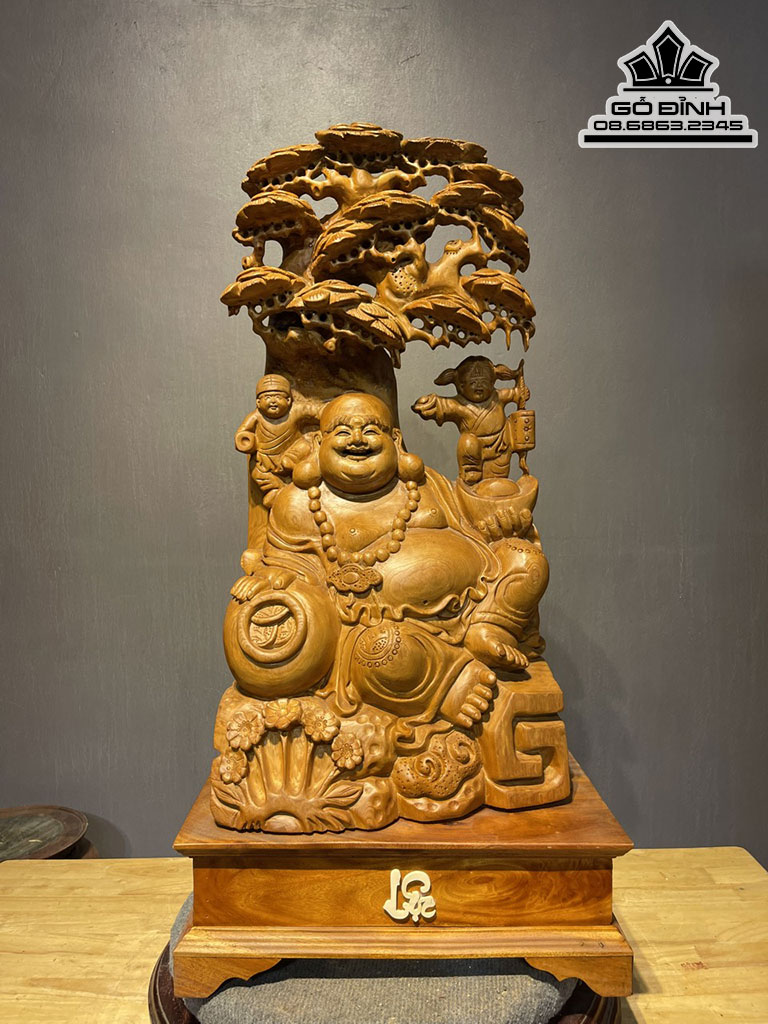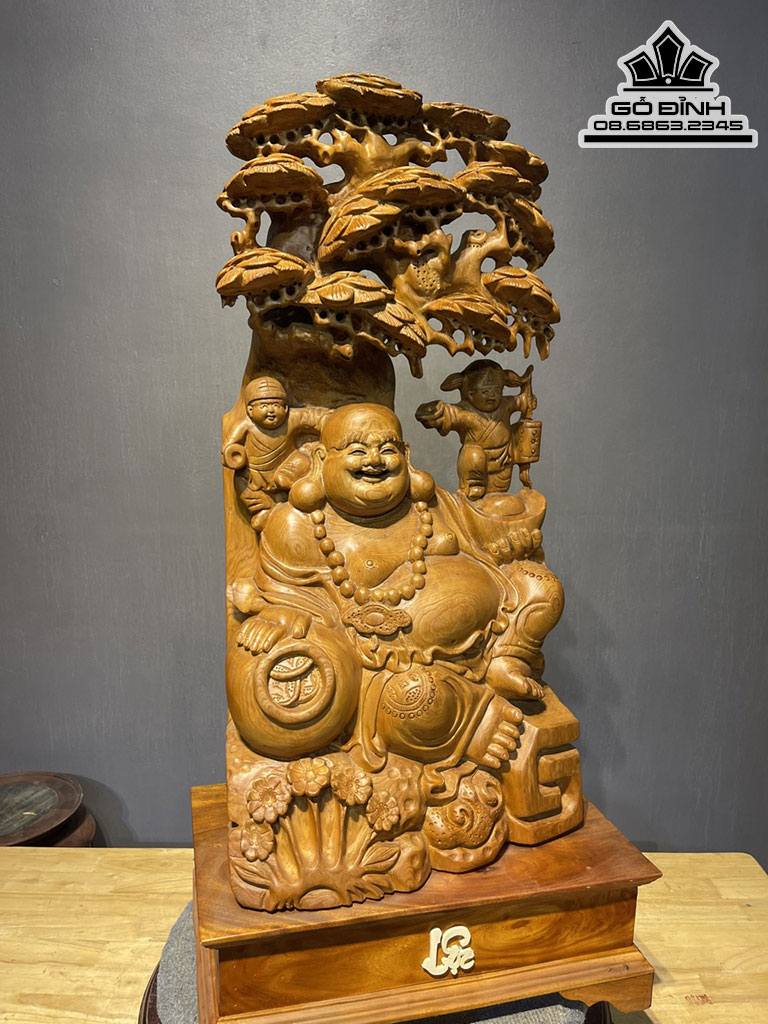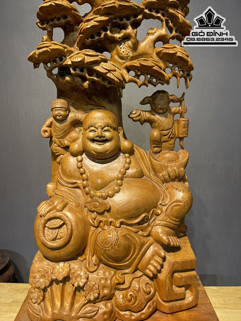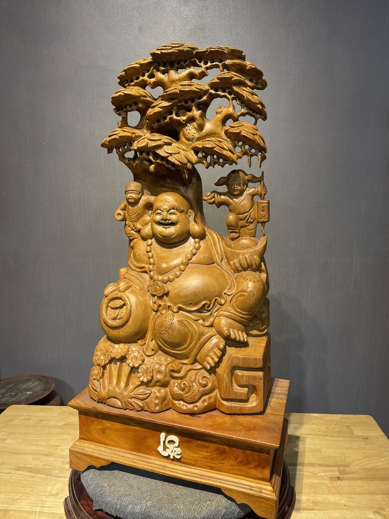 Tượng Phật Di Lặc Ngồi Gốc Tùng Gỗ Ngọc Am Cao 78 Ngang 40 Sâu 25 Cả Kỷ 93 (cm)